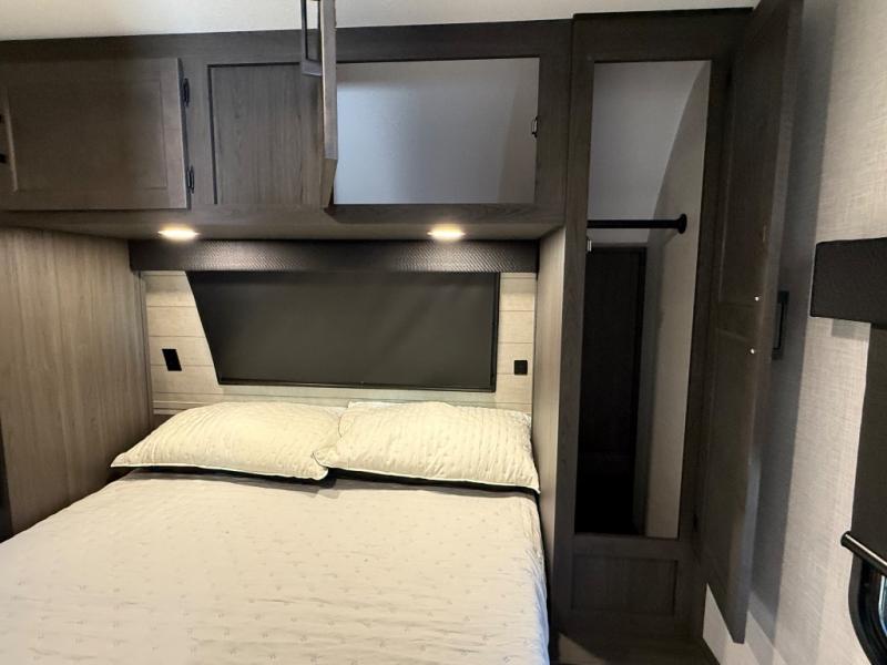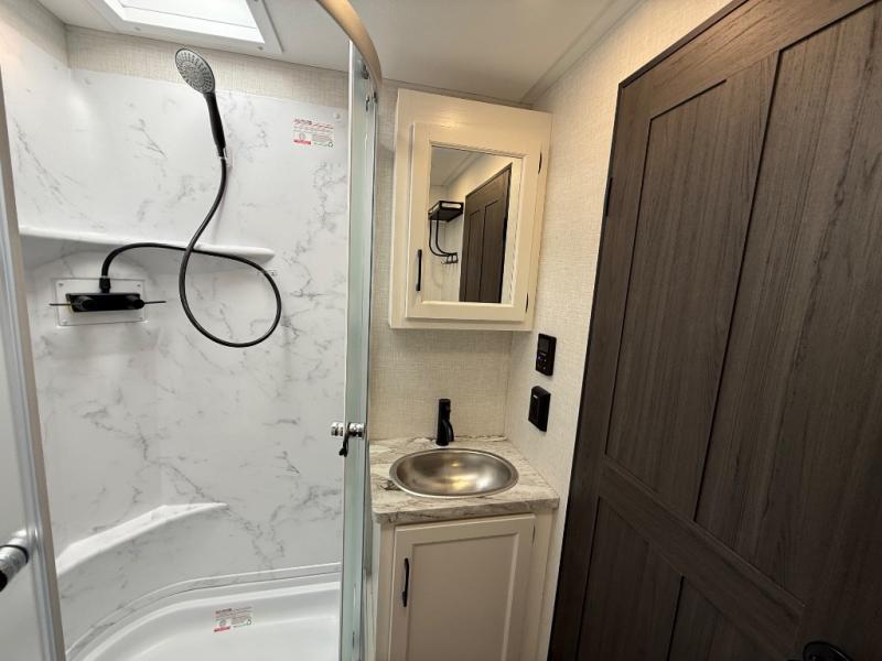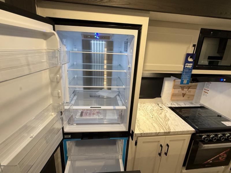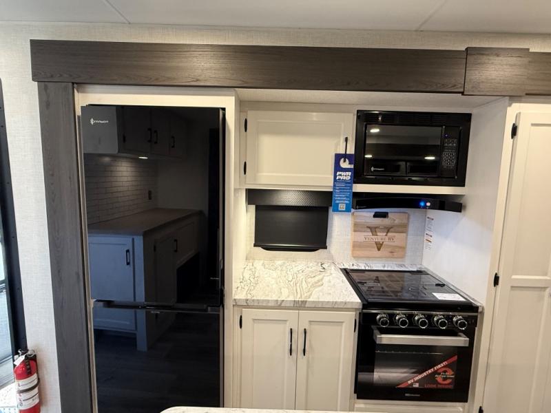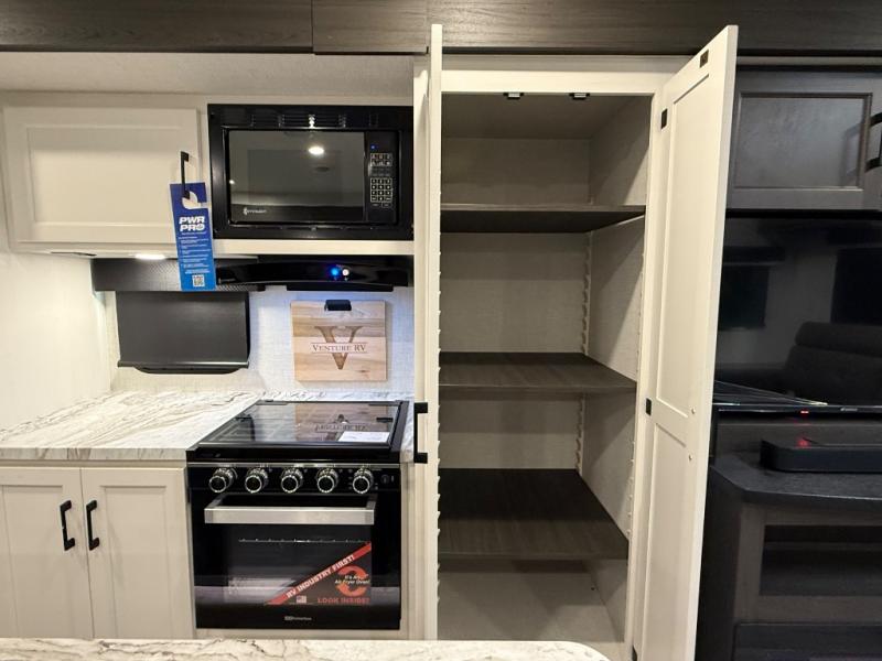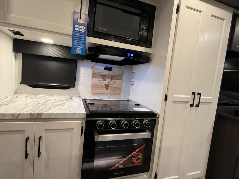 Every Venture RV SportTrek lightweight travel trailer is constructed to offer peace of mind and the comforts of home! Their purposeful residential kitchens are packed with handy features like a Furrion oven and three burner cooktop, a large stainless steel sink with a cover and dish drying rack, plus a 12V refrigerator. You will find plenty of storage throughout, including Safe-Tek hidden storage with a charging center and StorMore nightstands on either side of the bed behind the full-length closets, and the magnetic slam-latch baggage doors and spacious pass-through storage area will hold your outdoor gear in place. They even come with a hot and cold exterior shower and SporTrek's Weather Shield which includes a forced air heated and enclosed underbelly, radiant foil insulation wrapped tanks, and more features that will let you extend your camping season. You will also love the new residential upgraded furniture, Serta memory foam mattress, barn style passage doors, and many more comforts!