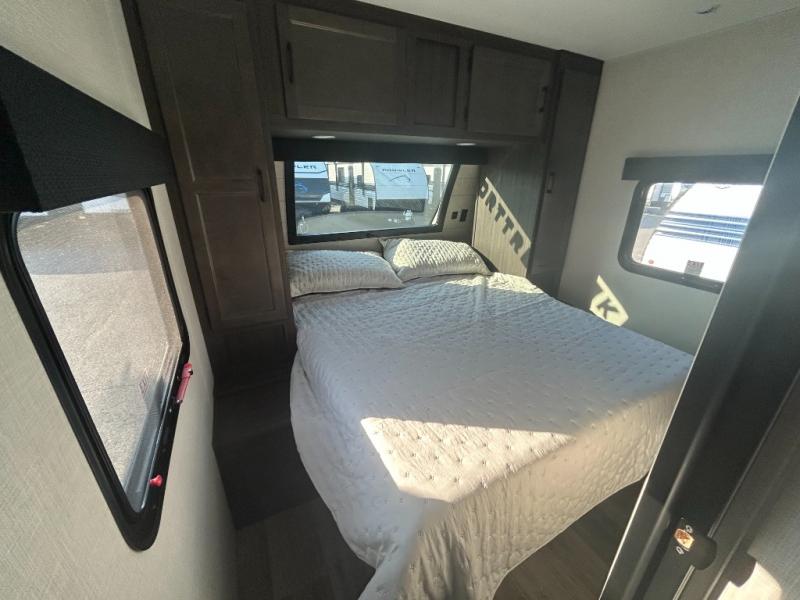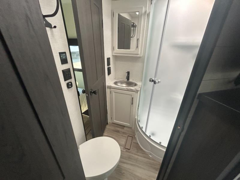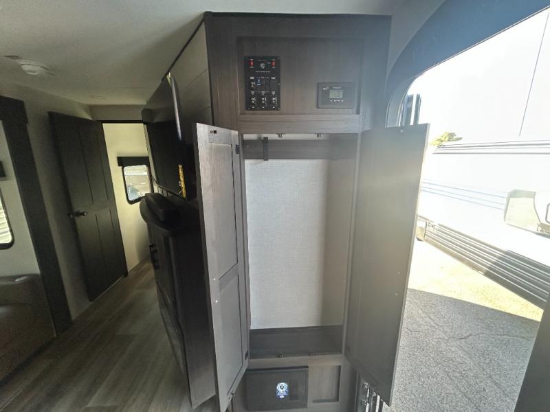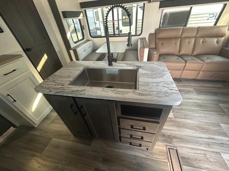 Every Venture RV SportTrek lightweight travel trailer is constructed to offer peace of mind and the comforts of home! Their purposeful residential kitchens are packed with handy features like a Furrion oven and three burner cooktop, a large stainless steel sink with a cover and dish drying rack, plus a 12V refrigerator. You will find plenty of storage throughout, including Safe-Tek hidden storage with a charging center and StorMore nightstands on either side of the bed behind the full-length closets. And the magnetic slam-latch baggage doors and spacious pass-through storage area will hold your outdoor gear in place. They even come with a hot and cold exterior shower and SporTrek's Weather Shield which includes a forced air heated and enclosed underbelly, high output A/C ducting, and more features that will let you extend your camping season. You will also love the new residential upgraded furniture, Serta memory foam mattress, barn style passage doors, and many more comforts!