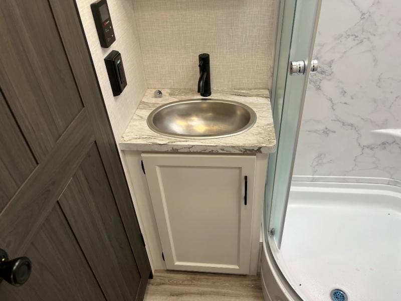 Every Venture RV SportTrek lightweight travel trailer is constructed to offer peace of mind and the comforts of home! Their purposeful residential kitchens are packed with handy features like a Furrion oven and three burner cooktop, a large stainless steel sink with a cover and dish drying rack, plus a 12V refrigerator. You will find plenty of storage throughout, including Safe-Tek hidden storage with a charging center and StorMore nightstands on either side of the bed behind the full-length closets. And the magnetic slam-latch baggage doors and spacious pass-through storage area will hold your outdoor gear in place. They even come with a hot and cold exterior shower and SporTrek's Weather Shield which includes a forced air heated and enclosed underbelly, high output A/C ducting, and more features that will let you extend your camping season. You will also love the new residential upgraded furniture, Serta memory foam mattress, barn style passage doors, and many more comforts!