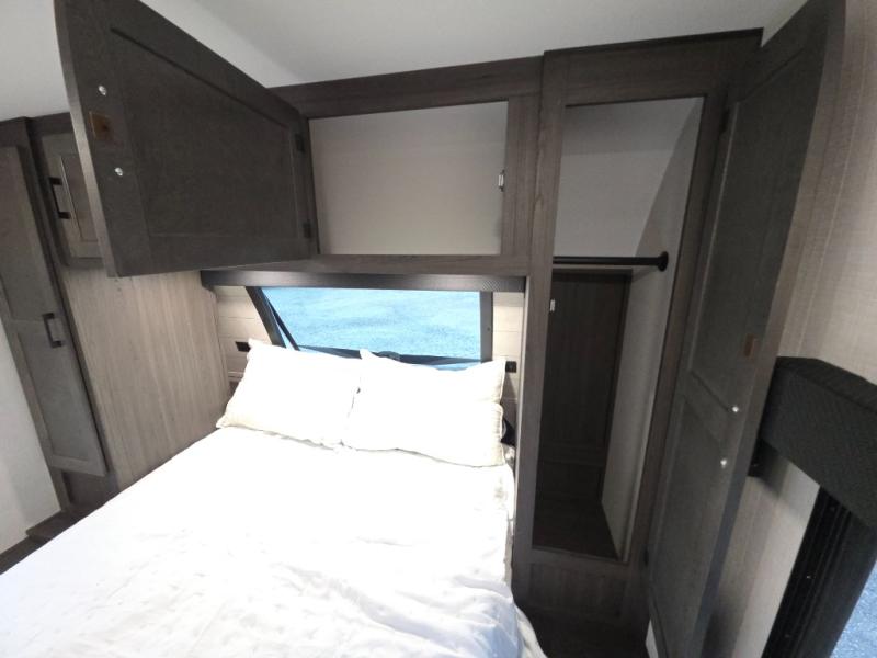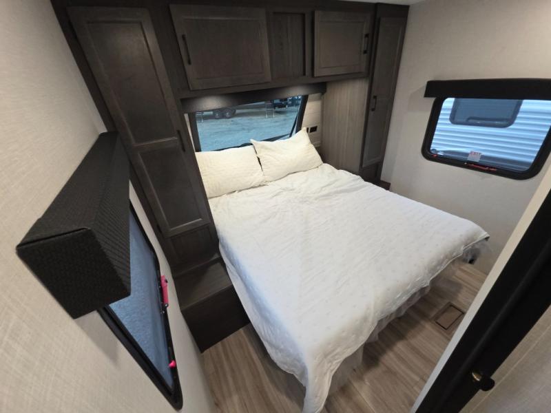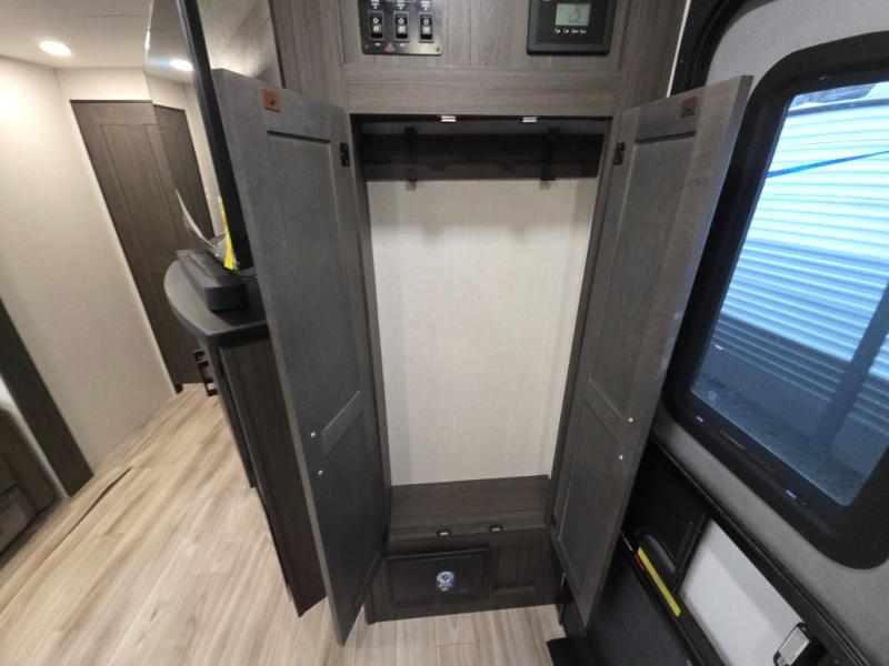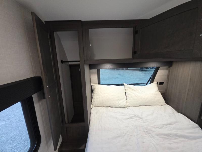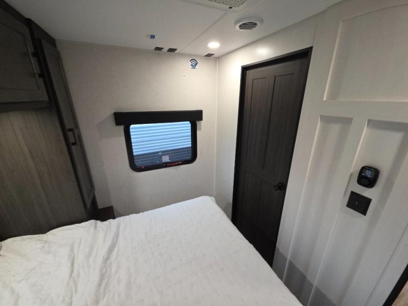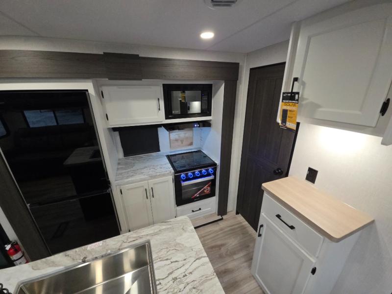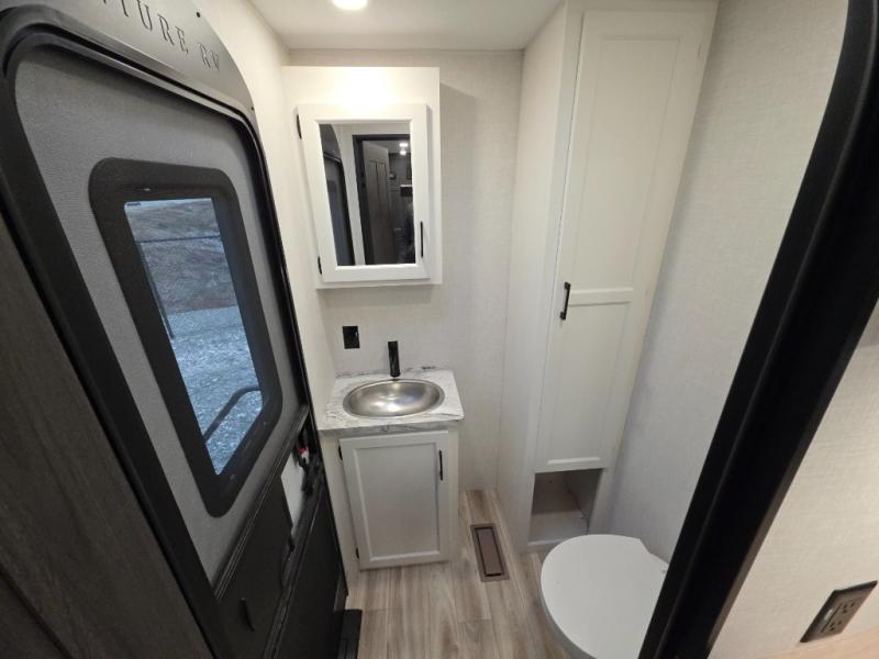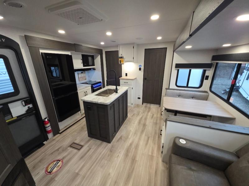Every Venture RV SportTrek lightweight travel trailer is constructed to offer peace of mind and the comforts of home! Their purposeful residential kitchens are packed with handy features like a Furrion oven and three burner cooktop, a large stainless steel sink with a cover and dish drying rack, plus a 12V refrigerator. You will find plenty of storage throughout, including Safe-Tek hidden storage with a charging center and StorMore nightstands on either side of the bed behind the full-length closets. And the magnetic slam-latch baggage doors and spacious pass-through storage area will hold your outdoor gear in place. They even come with a hot and cold exterior shower and SporTrek's Weather Shield which includes a forced air heated and enclosed underbelly, radiant foil insulation wrapped tanks, and more features that will let you extend your camping season. You will also love the new residential upgraded furniture, Serta memory foam mattress, barn style passage doors, and many more comforts!