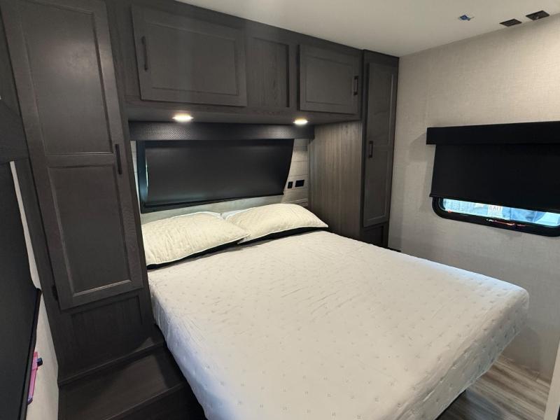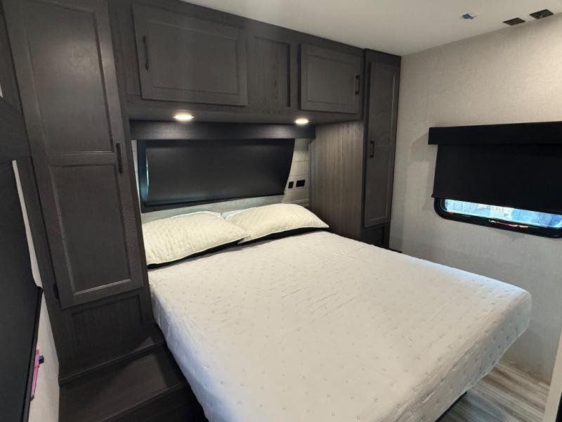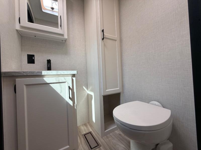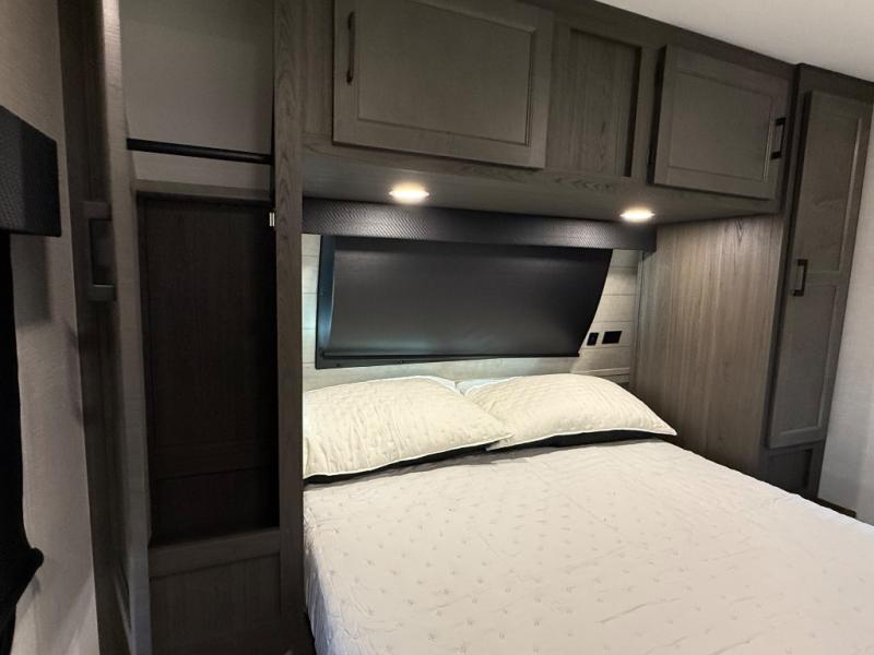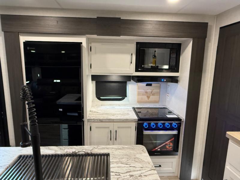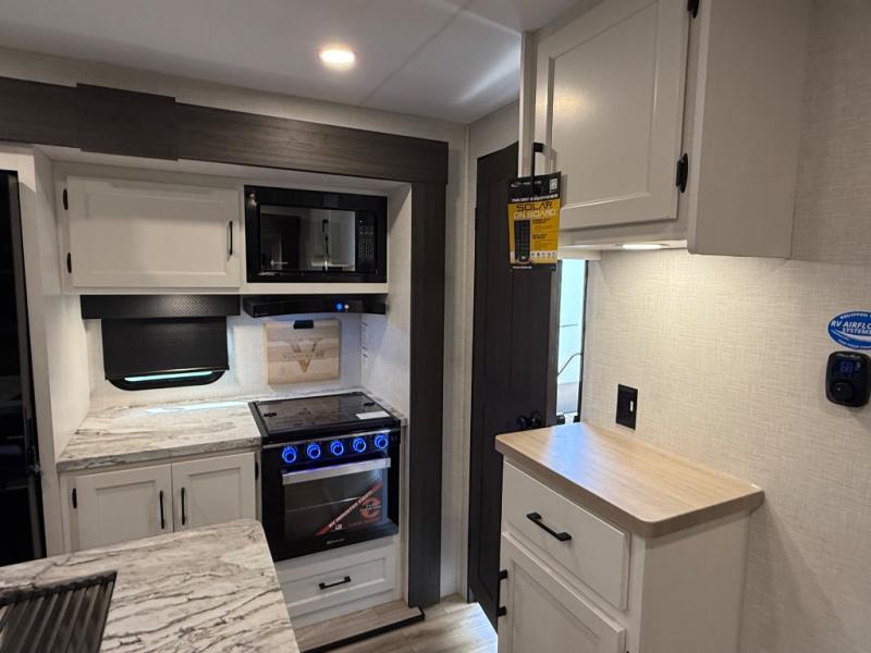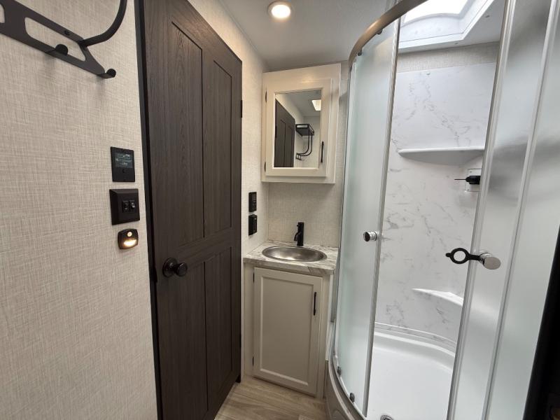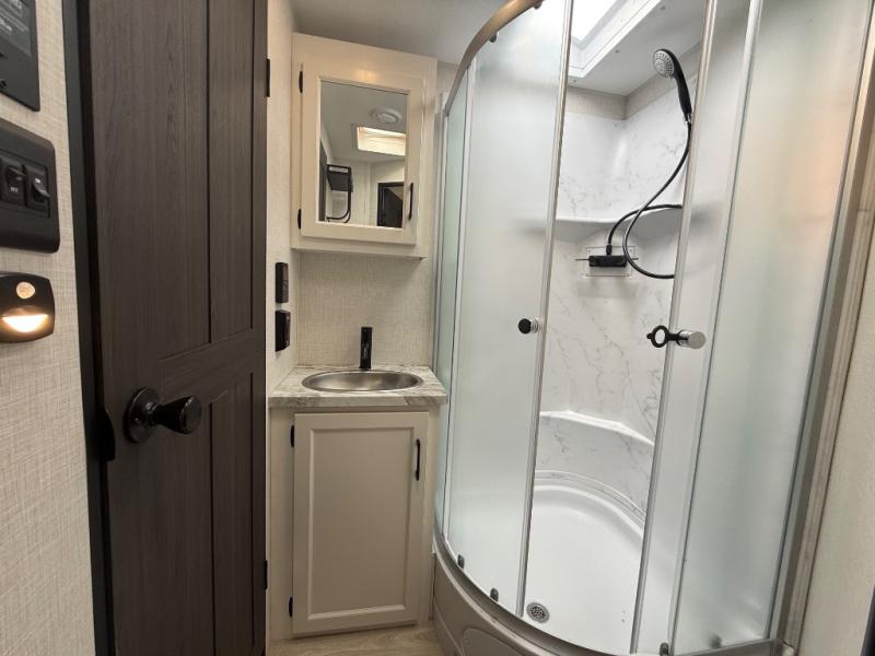 Every Venture RV SportTrek lightweight travel trailer is constructed to offer peace of mind and the comforts of home! Their purposeful residential kitchens are packed with handy features like a Furrion oven and three burner cooktop, a large stainless steel sink with a cover and dish drying rack, plus a 12V refrigerator. You will find plenty of storage throughout, including Safe-Tek hidden storage with a charging center and StorMore nightstands on either side of the bed behind the full-length closets. And the magnetic slam-latch baggage doors and spacious pass-through storage area will hold your outdoor gear in place. They even come with a hot and cold exterior shower and SporTrek's Weather Shield which includes a forced air heated and enclosed underbelly, radiant foil insulation wrapped tanks, and more features that will let you extend your camping season. You will also love the new residential upgraded furniture, Serta memory foam mattress, barn style passage doors, and many more comforts!