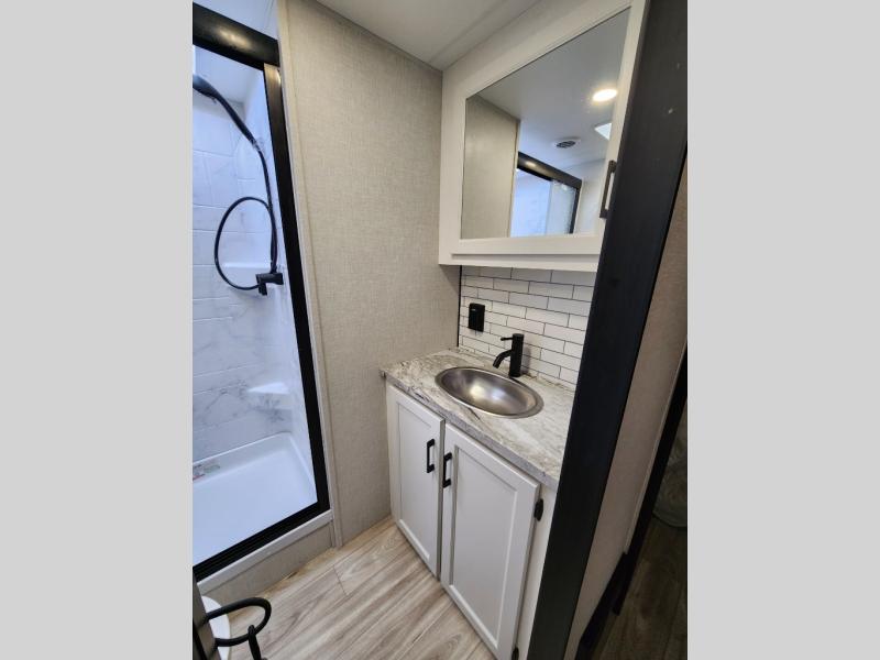 Experience travel redefined with the Venture RV SportTrek Fifth Wheel, where modern design meets everyday comfort. The painted fiberglass front cap with integrated LED lighting gives this RV a bold, aerodynamic look while enhancing visibility on the road. Inside, unwind in the living area with a 5,000 BTU electric fireplace, creating the perfect ambiance after a day of adventure. The JBL sound bar with a Bluetooth Flip speaker delivers premium audio inside and out, making entertainment effortless wherever you roam. And with a tankless water heater, you’ll enjoy endless hot water for showers and cleaning, ensuring that every journey feels just like home.