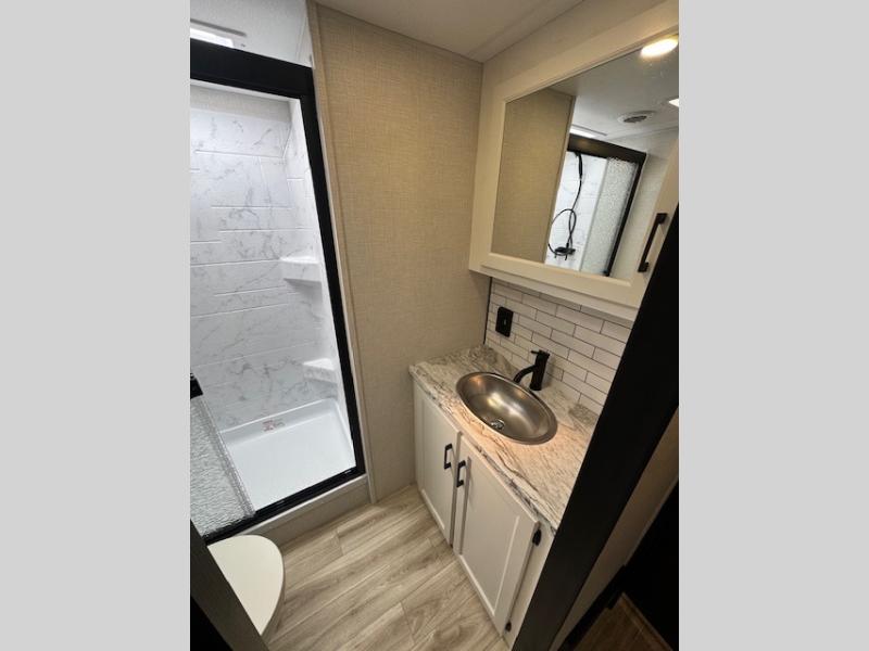 Experience travel redefined with the Venture RV SportTrek Fifth Wheel, where modern design meets everyday comfort. The painted fiberglass front cap with integrated LED lighting gives this RV a bold, aerodynamic look while enhancing visibility on the road. Inside, unwind in the living area with a 5,000 BTU electric fireplace, creating the perfect ambiance after a day of adventure. The JBL sound bar with a Bluetooth Flip speaker delivers premium audio inside and out, making entertainment effortless wherever you roam. And with a tankless water heater, you’ll enjoy endless hot water for showers and cleaning, ensuring that every journey feels just like home.