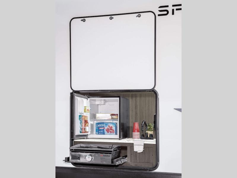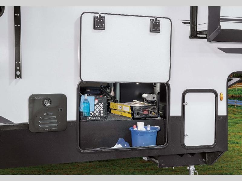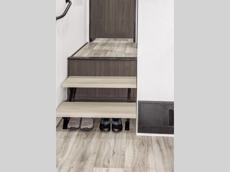 Experience travel redefined with the SportTrek Fifth Wheel, where modern design meets everyday comfort. The painted fiberglass front cap with integrated LED lighting gives this RV a bold, aerodynamic look while enhancing visibility on the road. Inside, unwind in the living area with a 5,000 BTU electric fireplace, creating the perfect ambiance after a day of adventure. The JBL sound system with a Bluetooth Flip speaker delivers premium audio inside and out, making entertainment effortless wherever you roam. And with a tankless water heater, you’ll enjoy endless hot water for showers and cleaning, ensuring that every journey feels just like home.