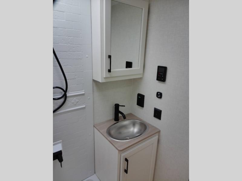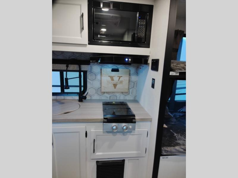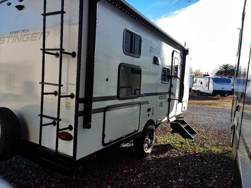 The Venture RV SportTrek Stinger Lite travel trailers are designed to elevate every journey, this model blends comfort, innovation, and durability in one refined package. Enjoy endless hot water with the tankless water heater, ensuring comfort no matter how long the adventure lasts. Inside, the modern farmhouse interior design with hardwood cabinet doors creates a warm, residential feel that’s both stylish and inviting. The 12V 8 cu. ft. refrigerator provides plenty of storage space for all your fresh foods, so you can enjoy homemade meals on the go without worrying about running out of space. Built to last, the Azdel laminated sidewalls add strength, moisture resistance, and reliability, giving you confidence wherever the road takes you.