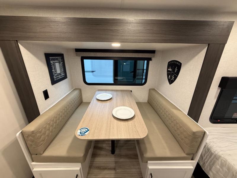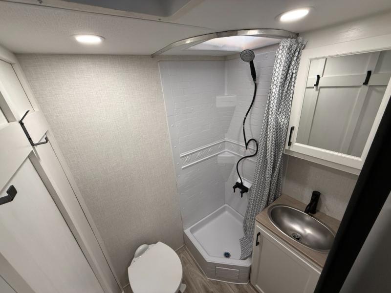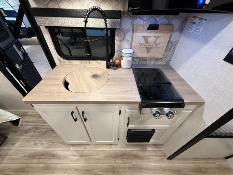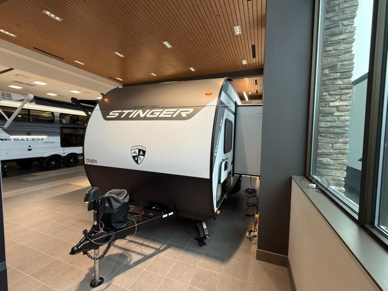 The Venture RV SportTrek Stinger Lite travel trailers are designed to elevate every journey, this model blends comfort, innovation, and durability in one refined package. Enjoy endless hot water with the tankless water heater, ensuring comfort no matter how long the adventure lasts. Inside, the modern farmhouse interior design with hardwood cabinet doors creates a warm, residential feel that’s both stylish and inviting. The 12V 8 cu. ft. refrigerator provides plenty of storage space for all your fresh foods, so you can enjoy homemade meals on the go without worrying about running out of space. Built to last, the Azdel laminated sidewalls add strength, moisture resistance, and reliability, giving you confidence wherever the road takes you.