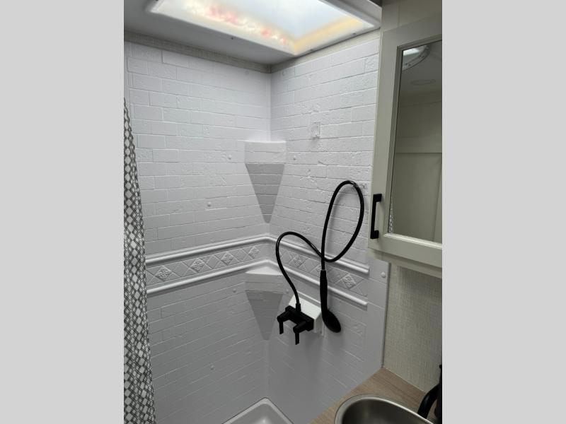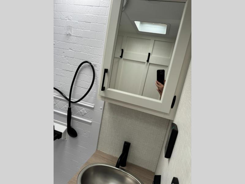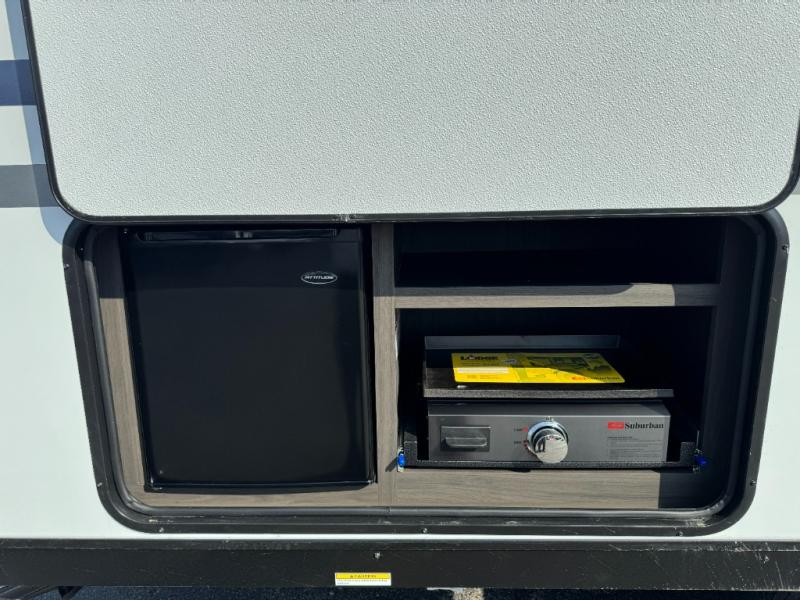 The Venture RV SportTrek Stinger Lite travel trailers are designed to elevate every journey, this model blends comfort, innovation, and durability in one refined package. Enjoy endless hot water with the tankless water heater, ensuring comfort no matter how long the adventure lasts. Inside, the modern farmhouse interior design with hardwood cabinet doors creates a warm, residential feel that’s both stylish and inviting. The 12V 8 cu. ft. refrigerator provides plenty of storage space for all your fresh foods, so you can enjoy homemade meals on the go without worrying about running out of space. Built to last, the Azdel laminated sidewalls add strength, moisture resistance, and reliability, giving you confidence wherever the road takes you.