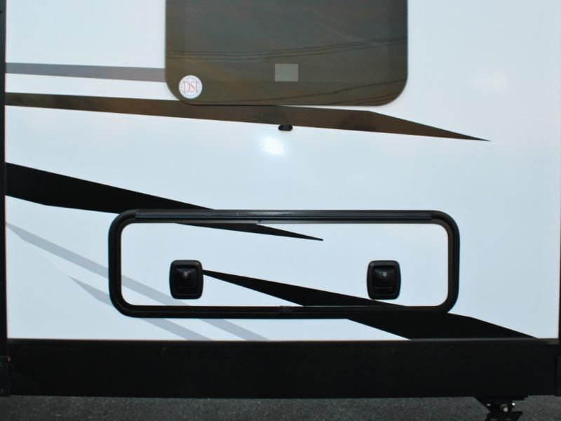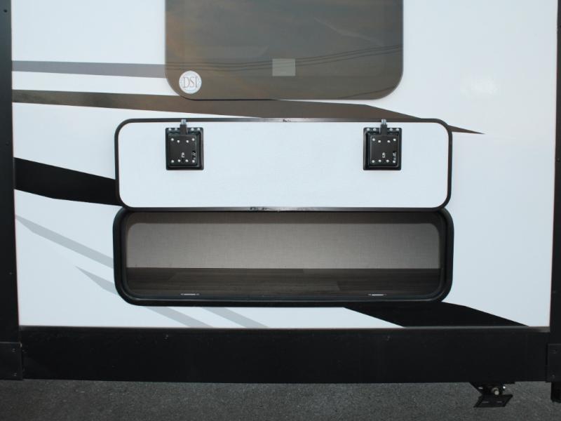Smart design touches—like slam-latch baggage doors with magnetic catches and motion-activated pass-through storage lighting—make setup and travel easy, day or night.