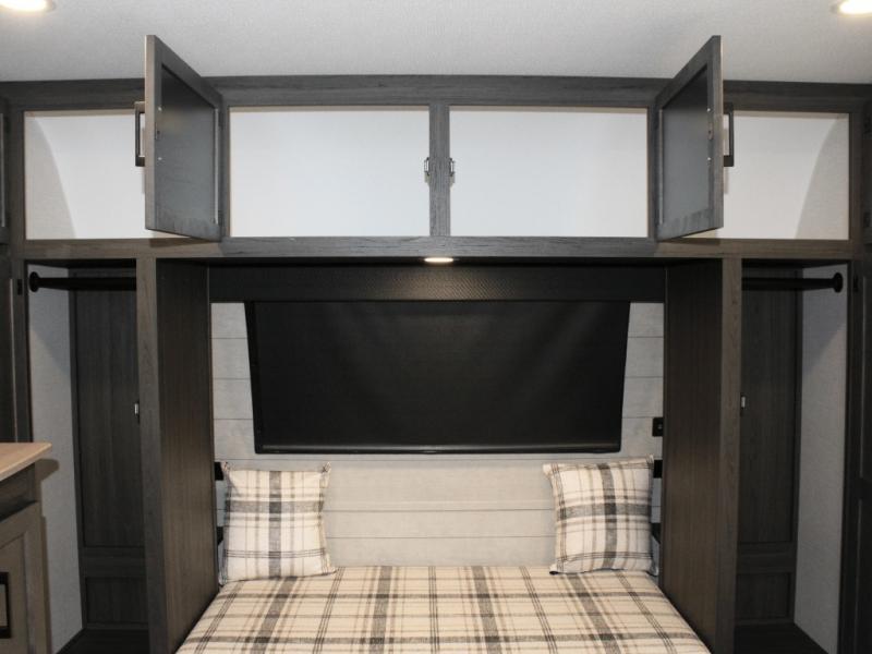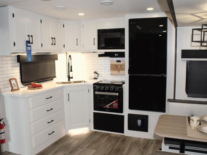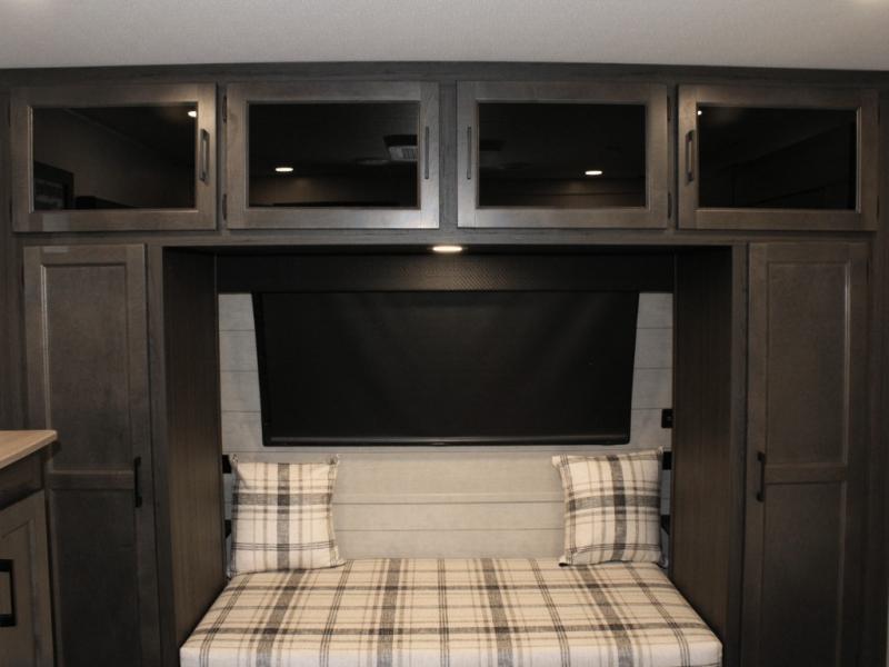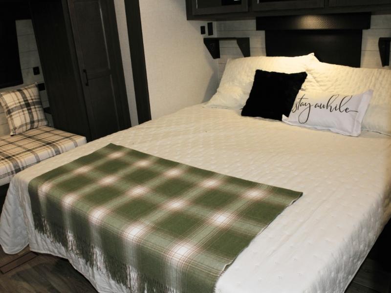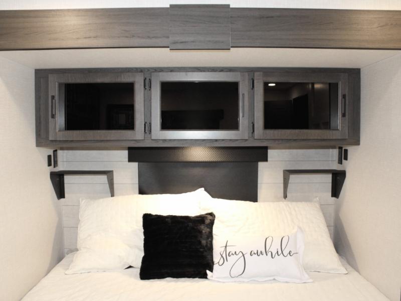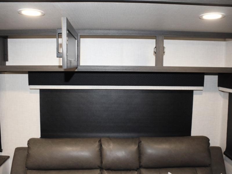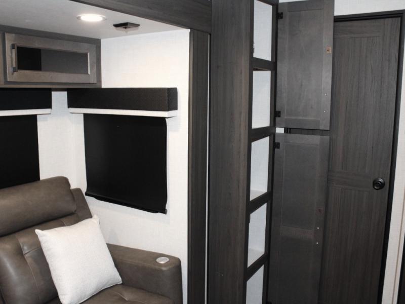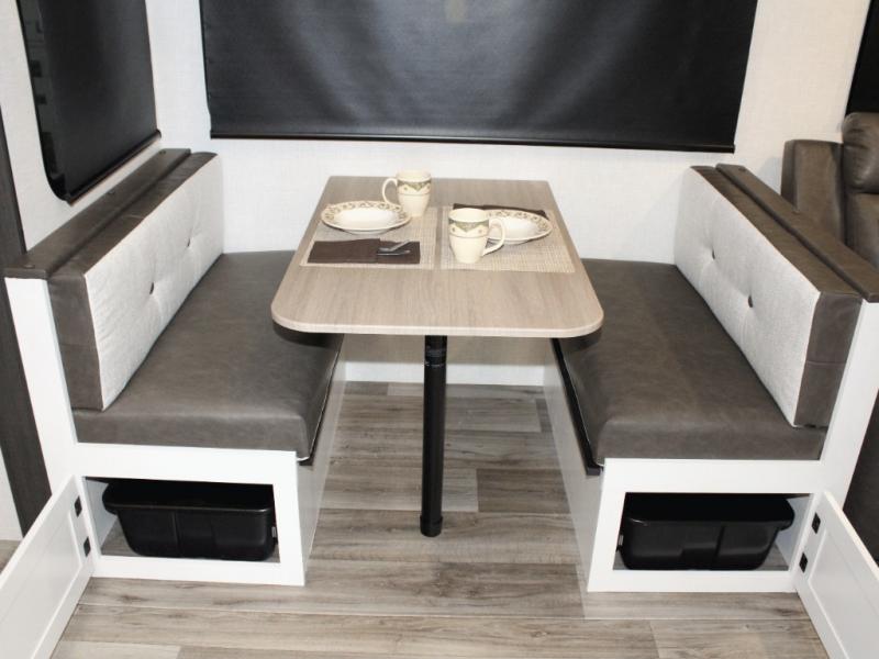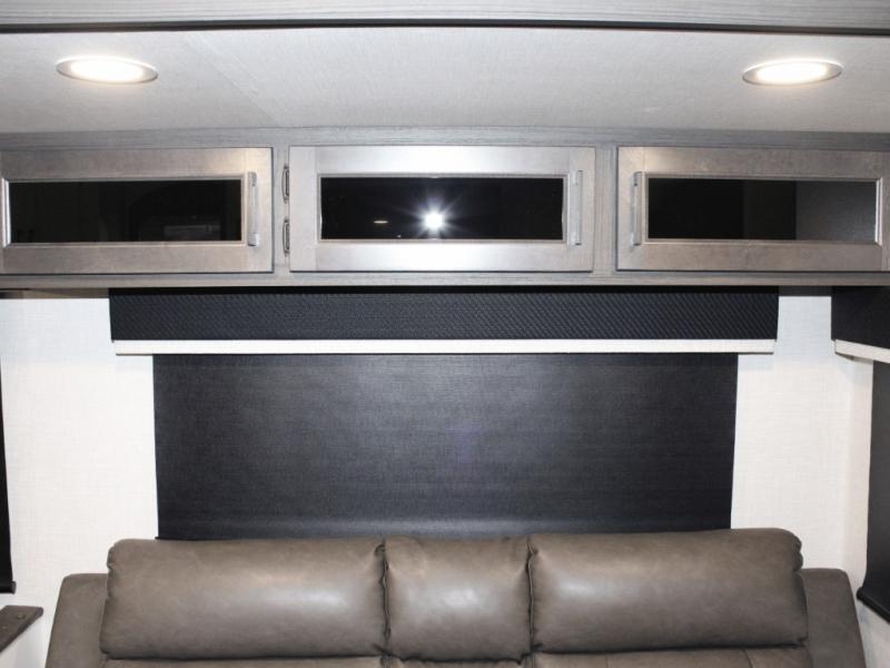 From its NXG Huck bolt frame to its walkable roof, this travel trailer is built for the long haul. The painted fiberglass front cap with integrated LED lighting adds striking curb appeal, while Beauflor wood plank flooring, designer valances, and fabric nightshades elevate the interior to residential luxury levels.