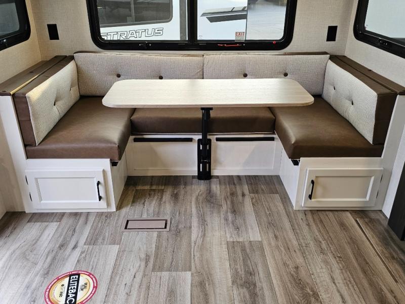 Spacious U-shaped rear dinette perfect for family meals, games, or extra sleeping space