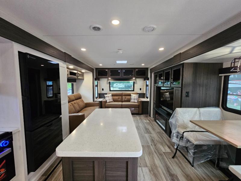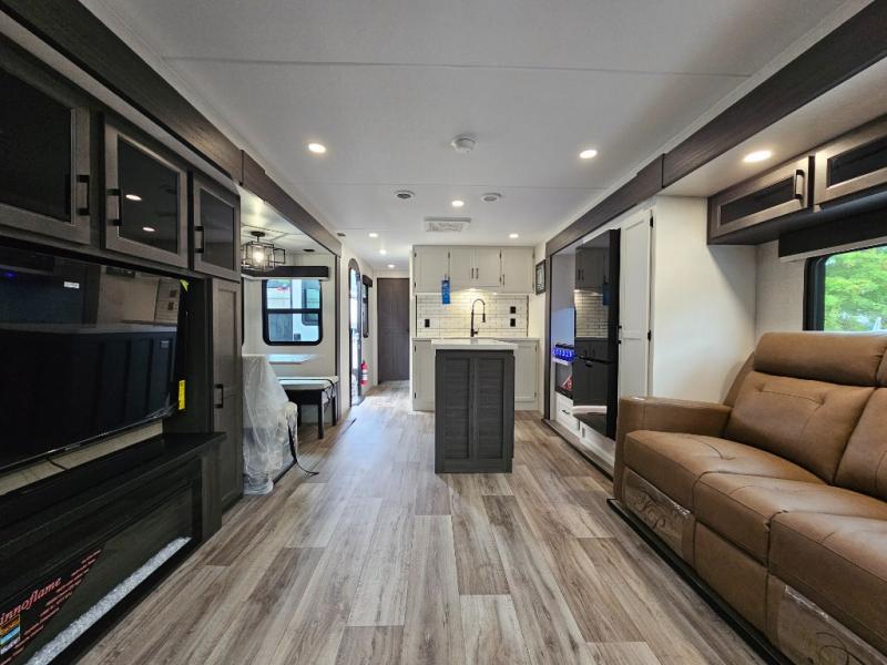 This model offers the perfect balance of elegance, comfort, and functionality. From dual fireplaces and a spacious king bedroom suite to the outdoor campfire café, the STT333VMI is ideal for travelers who want to combine upscale living with outdoor adventure. Whether you’re camping for the weekend or touring full-time, this SportTrek Touring Edition ensures every trip is unforgettable.