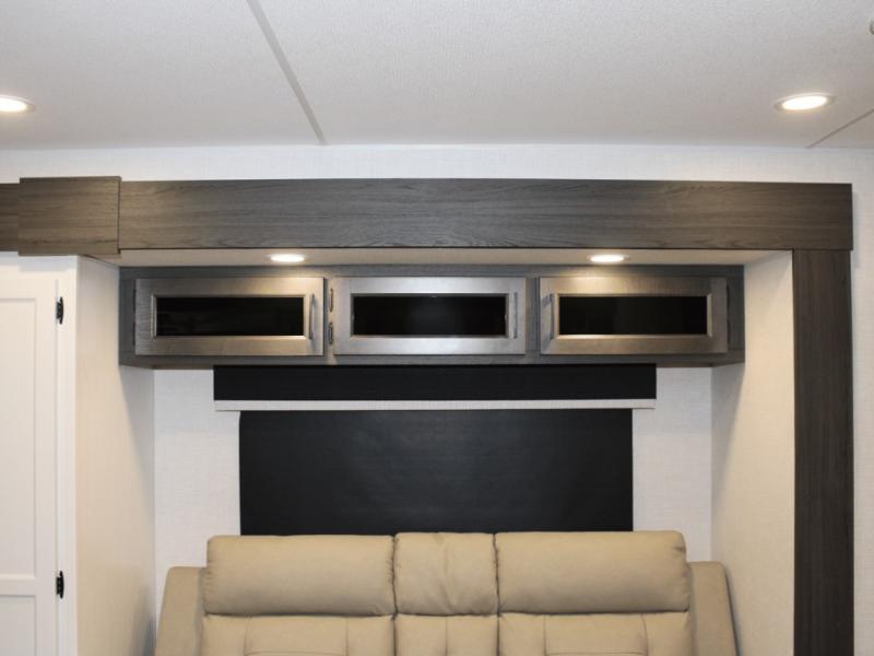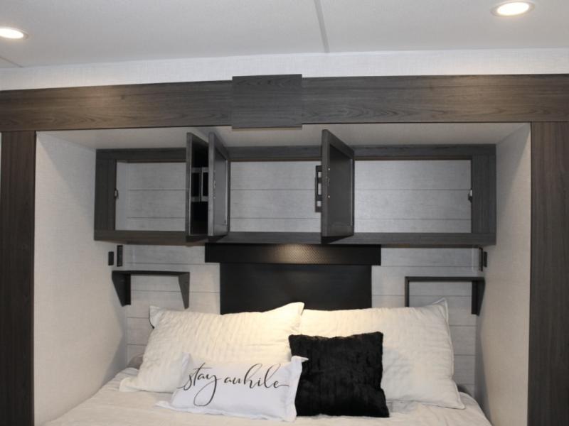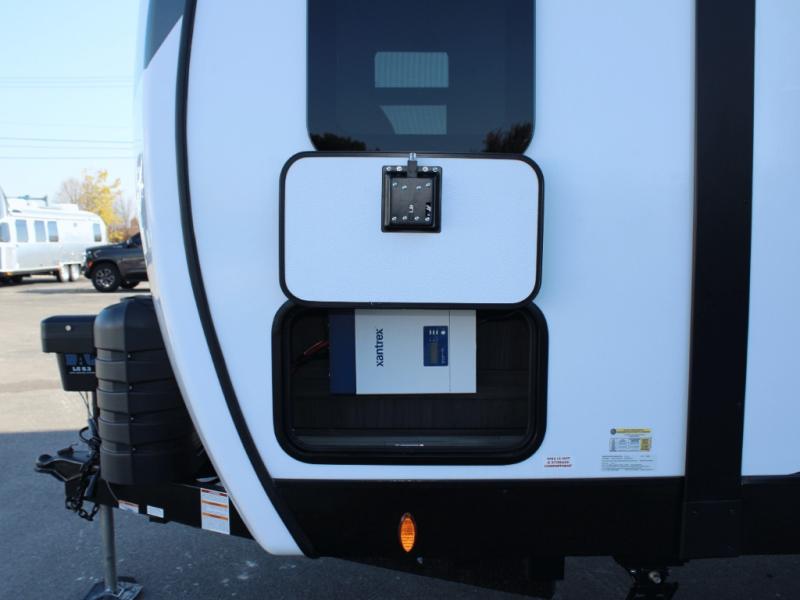 The SportTrek Touring 333VMI combines style and strength from the ground up. Built on a NXG Huck bolt frame with a fully walkable roof, it’s designed for durability and peace of mind. Its painted fiberglass front cap with integrated LED lighting and upgraded graphics package make a bold statement whether you’re on the road or parked at the campsite.