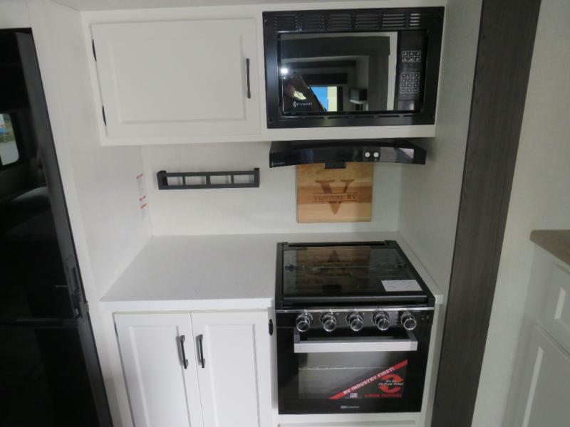 An elegant design and new features come with every one of these Venture RV SportTrek Touring Edition travel trailers! The NXG Huck bolt frame holds these units together and a walkable roof covers them. Heads will turn down the highway and at the campsite with an upgraded graphics package and a painted fiberglass front cap with integrated LED light. The exterior pass-through storage area has slam latch baggage doors with magnetic catches so you don't have to worry about them closing on you and a motion activated light to see your items clearly even at night. Luxury abounds throughout these units, especially with the mandatory Interior Luxury package which comes with solid surface kitchen countertops, designer valances with fabric nightshades, two 30" frameless fireplaces, and Beauflor wood plank flooring that is easy to clean. Come find your favorite model today!