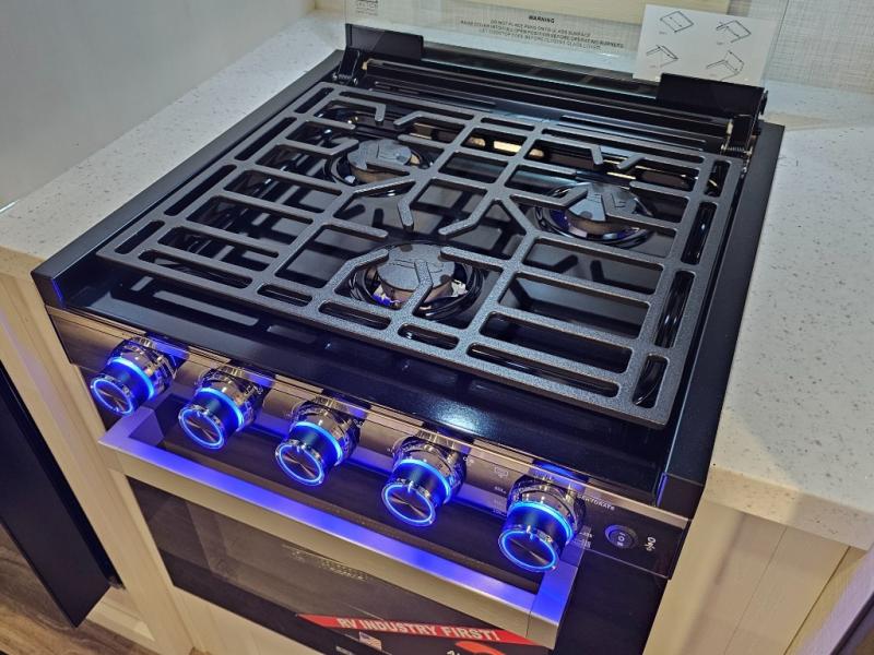 Three-burner cooktop with oven, microwave, and 10 cu. ft. refrigerator