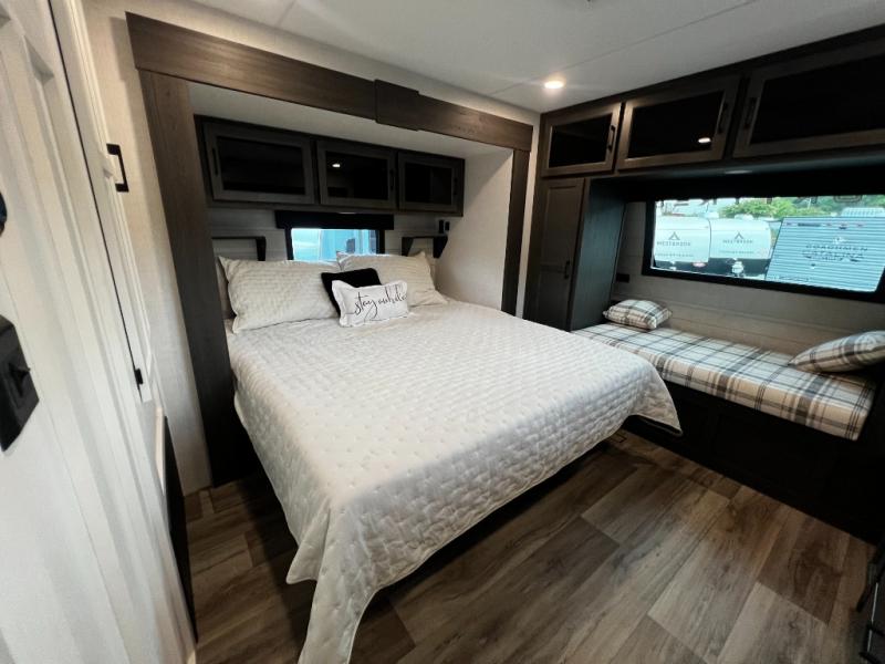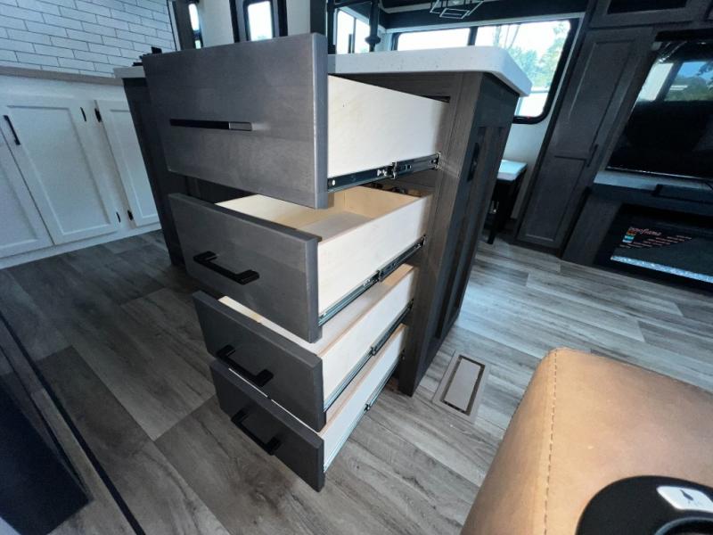 King-Sized Comfort – Relax in a private front bedroom with a 70" x 80" Sleep Tight king bed slide.