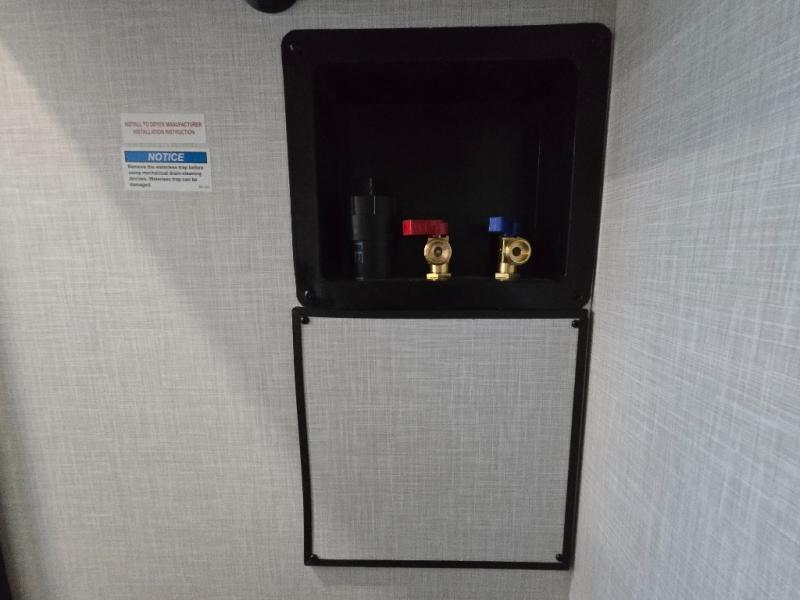 Wardrobe with shelf storage closet and washer/dryer prep for extended stays.