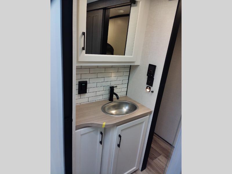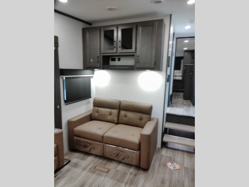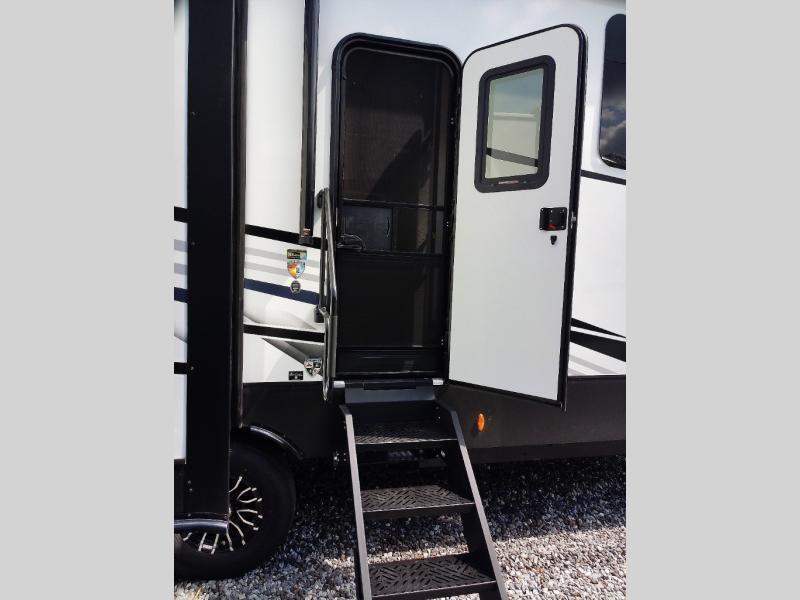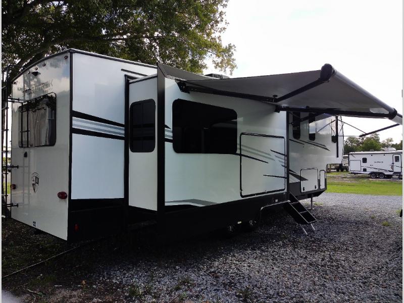 An elegant design and new features come with every one of these Venture RV SportTrek Touring Edition fifth wheels! The NXG Huck bolt frame holds these units together and Tufflex PVC roofing covers them. Heads will turn down the highway and at the campsite with the frameless tinted windows and high gloss fiberglass front cap with automotive paint. The exterior pass-through storage area has slam latch baggage doors with magnetic catches so you don't have to worry about them closing on you and LED lighting on the electric awning so you can see clearly even at night. Luxury abounds throughout these units, especially with the two fireplaces, solid surface kitchen countertops, blackout roller shades, and maximum storage designs. Come find your favorite model today!