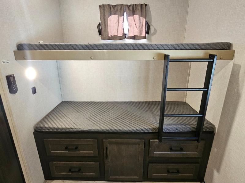 The SportTrek STTF354VBH is designed for families who want space, privacy, and upscale features in one impressive fifth wheel. With a private rear bunkhouse, bath and a half, and a spacious main living area, this model offers comfort and functionality for extended trips or weekend adventures.