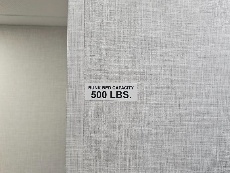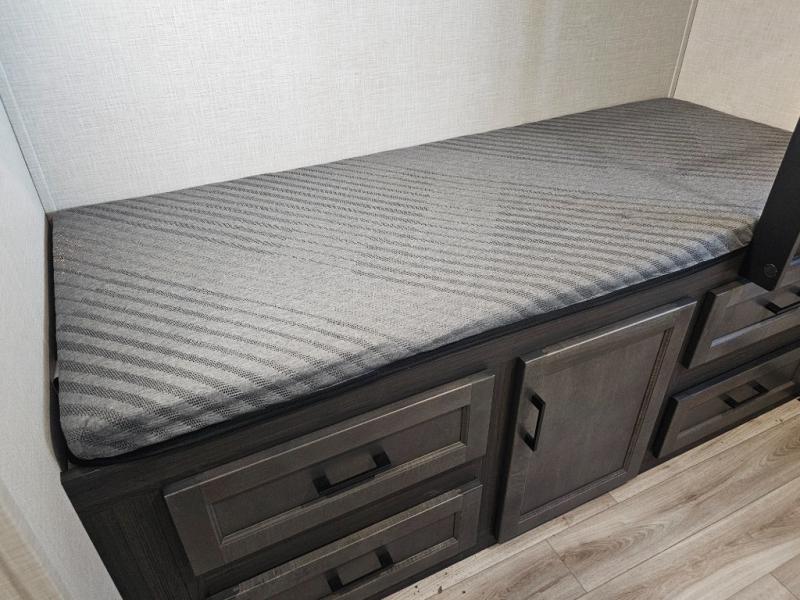 Rear private bunkhouse with bunk over bunk and bunk above a sofa with table