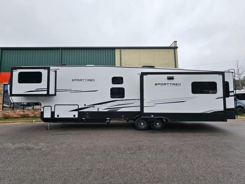 The SportTrek Touring Edition STTF363VFR delivers residential luxury, versatile living space, and premium construction in one beautifully designed fifth wheel. With dual opposing slides, a middle bunkhouse flex room, king bed slide, and upscale finishes throughout, this model is built for extended stays and elevated camping experiences.