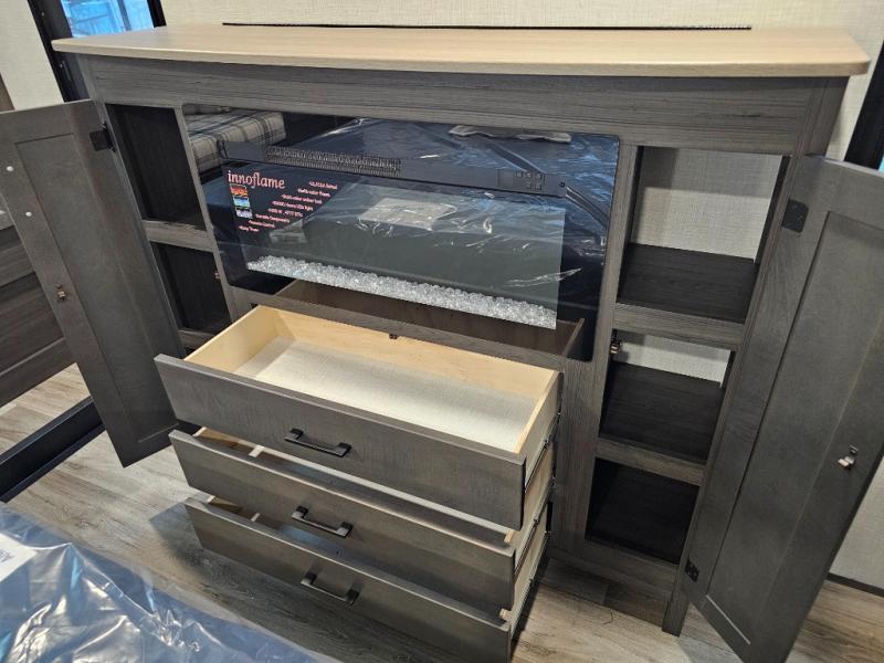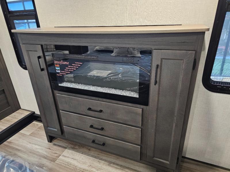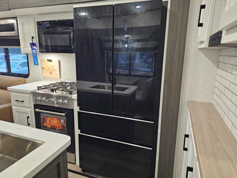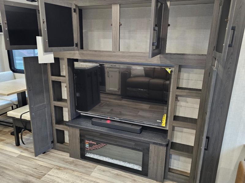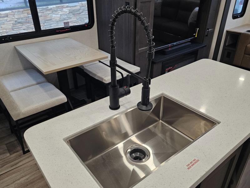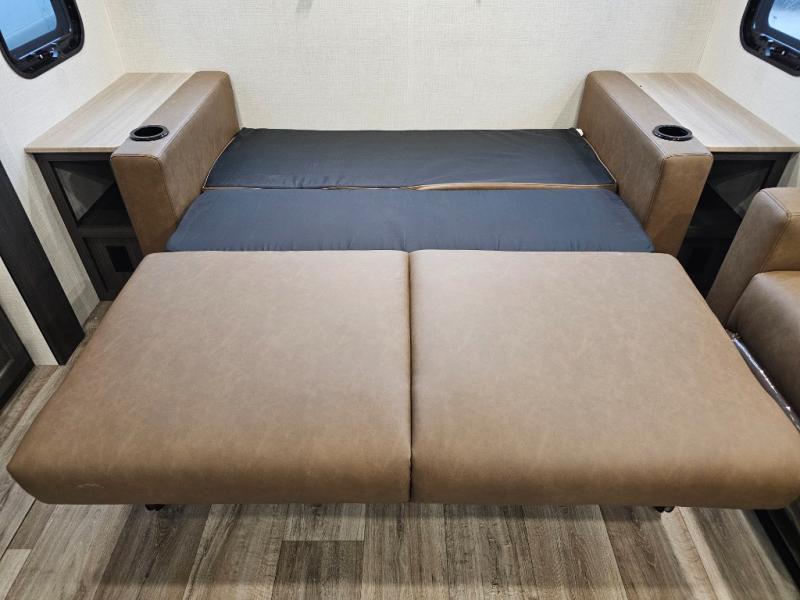 The STTF363VFR is perfect for families or full-time travelers who want flexibility without sacrificing luxury. The middle bunkhouse adds valuable multi-purpose space, while the king bedroom suite and expansive living area provide true residential comfort. With premium construction, upscale finishes, dual awnings, and thoughtful design throughout, this SportTrek Touring Edition is ready to elevate every adventure.