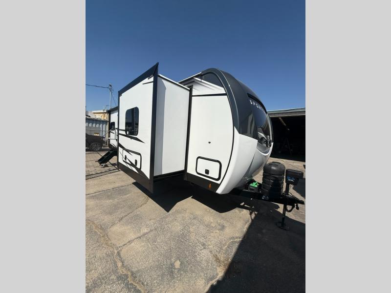 An elegant design and new features come with every one of these Venture RV SportTrek Touring Edition travel trailers! The NXG Huck bolt frame holds these units together and a walkable roof covers them. Heads will turn down the highway and at the campsite with an upgraded graphics package and a painted fiberglass front cap with integrated LED light. The exterior pass-through storage area has slam latch baggage doors with magnetic catches so you don't have to worry about them closing on you and a motion activated light to see your items clearly even at night. Luxury abounds throughout these units, especially with the mandatory Interior Luxury package which comes with solid surface kitchen countertops, designer valances with fabric nightshades, two 30" frameless fireplaces, and Beauflor wood plank flooring that is easy to clean. Come find your favorite model today!