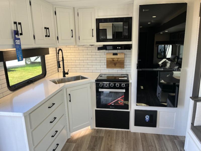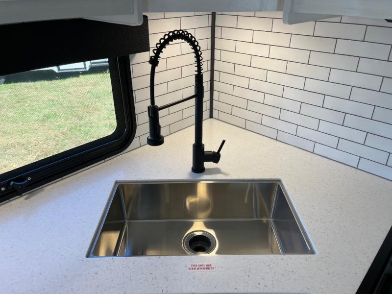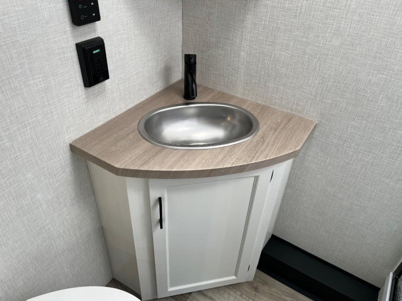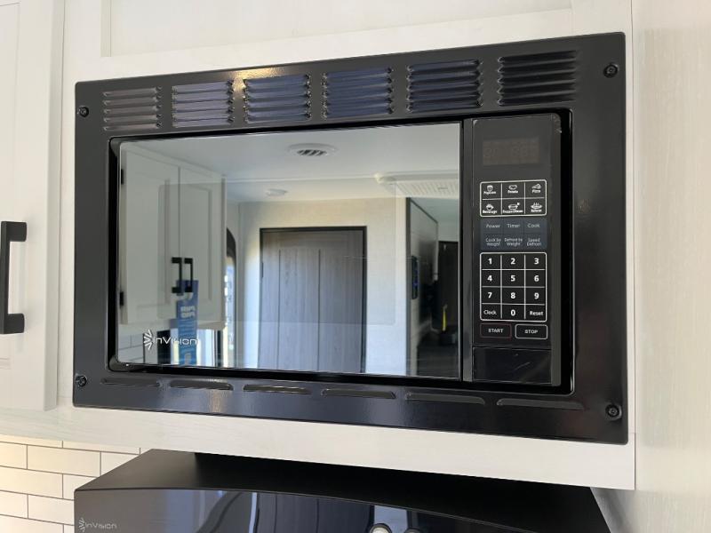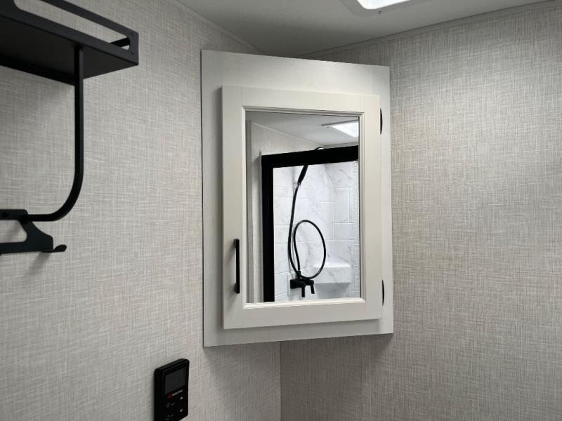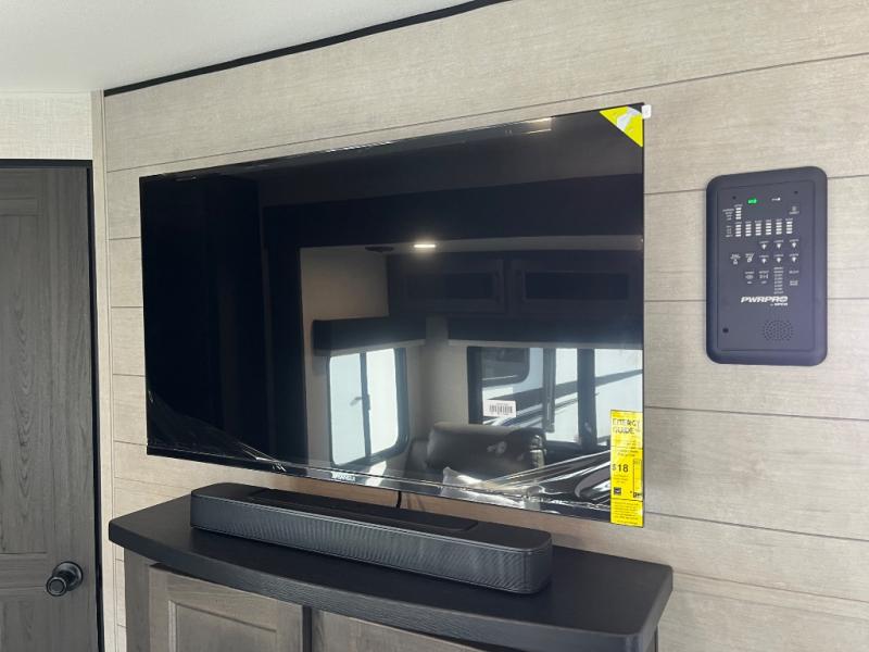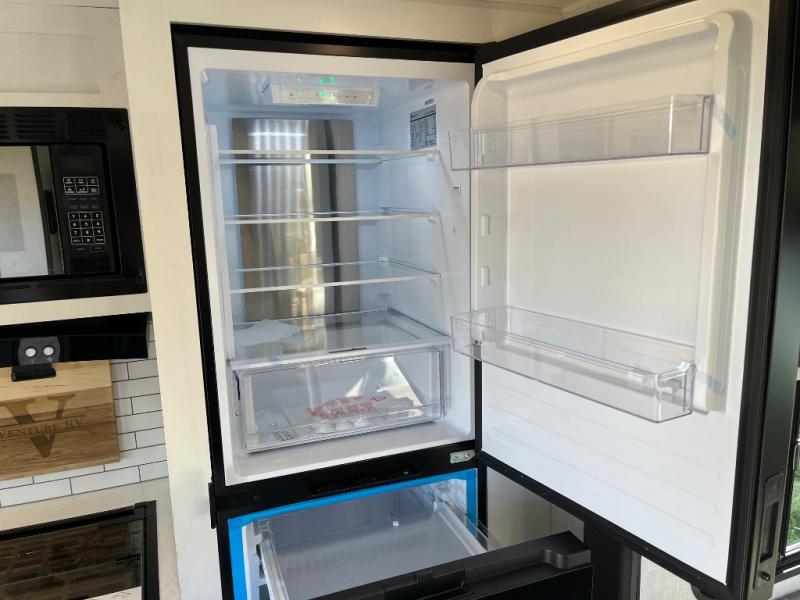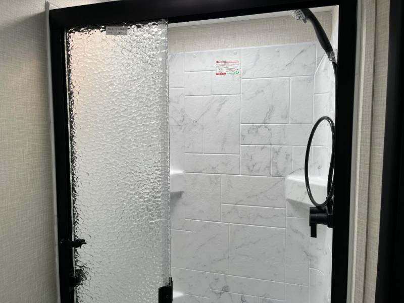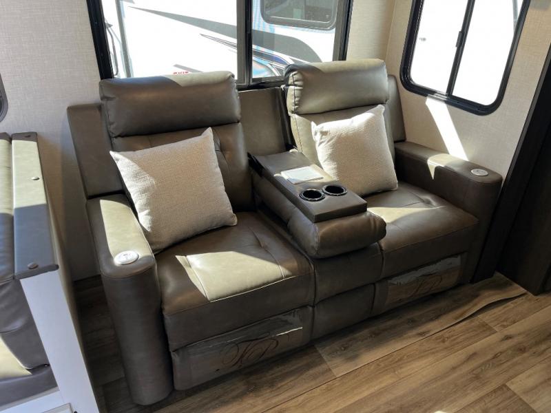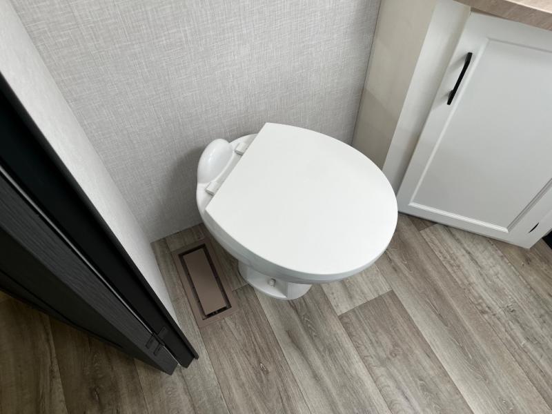 This travel trailer is perfect for two people who want to escape from everyday life! The front private bedroom has a 70" x 80" Sleep Tight king bed slide for more interior space, a dresser with a 30" frameless fireplace and TV, and a window seat to read a book with a view. Freshen up each morning in the full bathroom with the 30" x 36" shower then head to the rear kitchen to fry up some eggs on the three burner cooktop. The Sit N' Slide table offers a comfortable place to enjoy your meals, play card games, and even transform into an extra sleeping space. Grab a snack from the walk-in pantry and relax on the 70" tri-fold sofa across from the entertainment center with a 30" frameless fireplace!