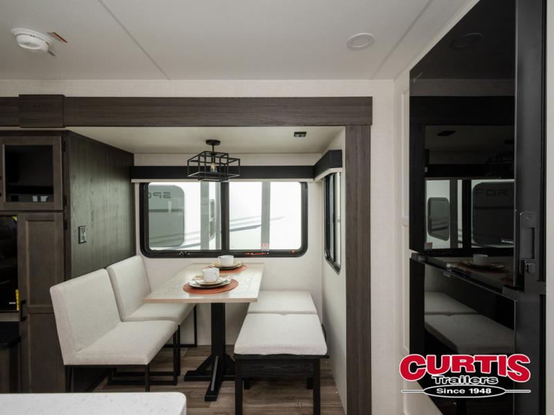 An elegant design and new features come with every one of these Venture RV SportTrek Touring Edition travel trailers! The NXG Huck bolt frame holds these units together and a walkable roof covers them. Heads will turn down the highway and at the campsite with an upgraded graphics package and a painted fiberglass front cap with integrated LED light. The exterior pass-through storage area has slam latch baggage doors with magnetic catches so you don't have to worry about them closing on you and a motion activated light to see your items clearly even at night. Luxury abounds throughout these units, especially with the mandatory Interior Luxury package which comes with solid surface kitchen countertops, designer valances with fabric nightshades, two 30" frameless fireplaces, and Beauflor wood plank flooring that is easy to clean. Come find your favorite model today!