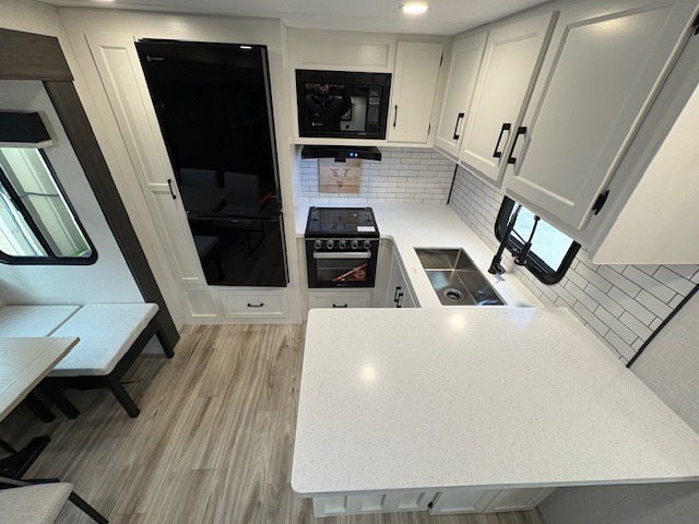 An elegant design and new features come with every one of these Venture RV SportTrek Touring Edition travel trailers! The NXG Huck bolt frame holds these units together and a walkable roof covers them. Heads will turn down the highway and at the campsite with an upgraded graphics package and a painted fiberglass front cap with integrated LED light. The exterior pass-through storage area has slam latch baggage doors with magnetic catches so you don't have to worry about them closing on you and a motion activated light to see your items clearly even at night. Luxury abounds throughout these units, especially with the mandatory Interior Luxury package which comes with solid surface kitchen countertops, designer valances with fabric nightshades, two 30" frameless fireplaces, and Beauflor wood plank flooring that is easy to clean. Come find your favorite model today!