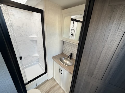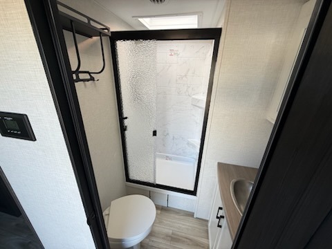 An elegant design and new features come with every one of these Venture RV SportTrek Touring Edition travel trailers! The NXG Huck bolt frame holds these units together and a walkable roof covers them. Heads will turn down the highway and at the campsite with an upgraded graphics package and a painted fiberglass front cap with integrated LED light. The exterior pass-through storage area has slam latch baggage doors with magnetic catches so you don't have to worry about them closing on you and a motion activated light to see your items clearly even at night. Luxury abounds throughout these units, especially with the mandatory Interior Luxury package which comes with solid surface kitchen countertops, designer valances with fabric nightshades, two 30" frameless fireplaces, and Beauflor wood plank flooring that is easy to clean. Come find your favorite model today!