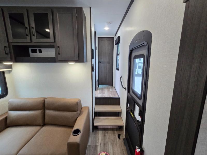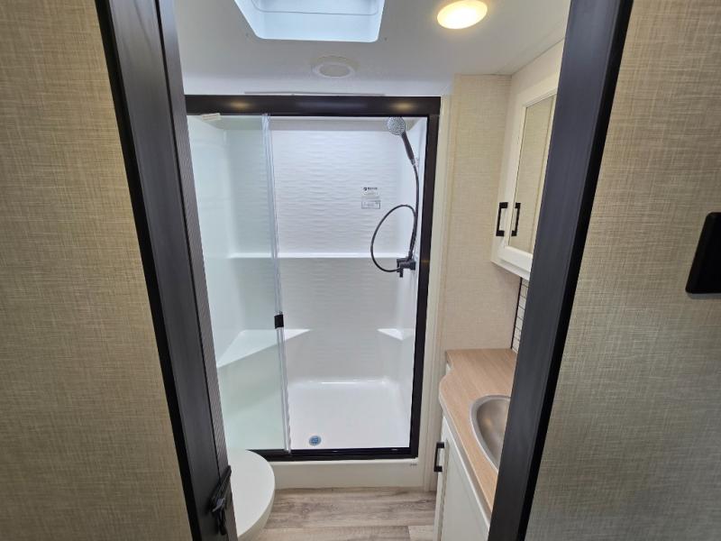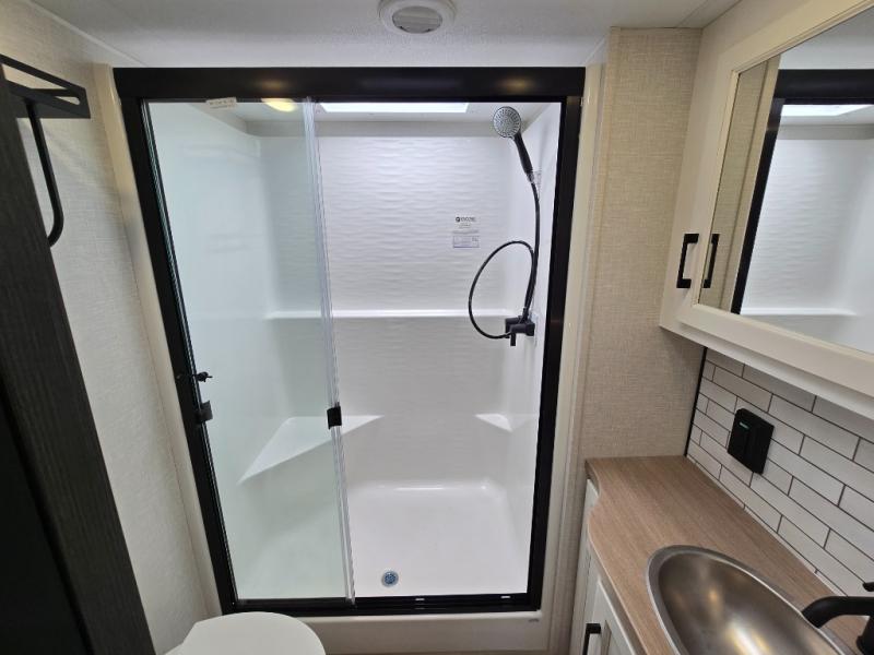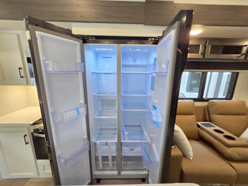 An elegant design and new features come with every one of these Venture RV SportTrek Touring Edition fifth wheels! The NXG Huck bolt frame holds these units together and Tufflex PVC roofing covers them. Heads will turn down the highway and at the campsite with the frameless tinted windows and high gloss fiberglass front cap with automotive paint. The exterior pass-through storage area has slam latch baggage doors with magnetic catches so you don't have to worry about them closing on you and LED lighting on the electric awning so you can see clearly even at night. Luxury abounds throughout these units, especially with the two fireplaces, solid surface kitchen countertops, blackout roller shades, and maximum storage designs. Come find your favorite model today!