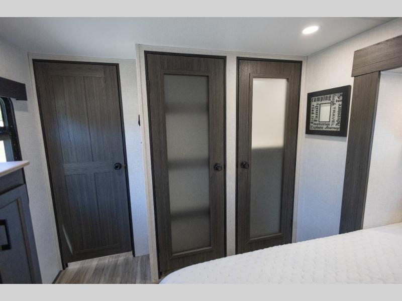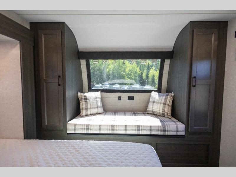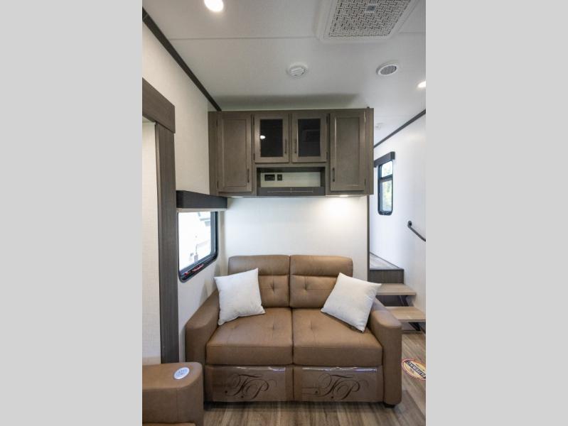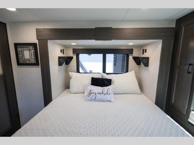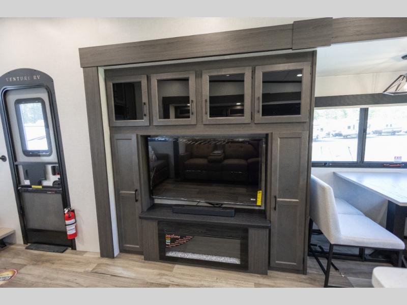 An elegant design and new features come with every one of these Venture RV SportTrek Touring Edition fifth wheels! The NXG Huck bolt frame holds these units together and Tufflex PVC roofing covers them. Heads will turn down the highway and at the campsite with the frameless tinted windows and high gloss fiberglass front cap with automotive paint. The exterior pass-through storage area has slam latch baggage doors with magnetic catches so you don't have to worry about them closing on you and LED lighting on the electric awning so you can see clearly even at night. Luxury abounds throughout these units, especially with the two fireplaces, solid surface kitchen countertops, blackout roller shades, and maximum storage designs. Come find your favorite model today!