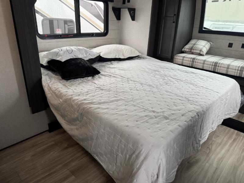 An elegant design and new features come with every one of these Venture RV SportTrek Touring Edition fifth wheels! The NXG Huck bolt frame holds these units together and Tufflex PVC roofing covers them. Heads will turn down the highway and at the campsite with the frameless tinted windows and high gloss fiberglass front cap with automotive paint. The exterior pass-through storage area has slam latch baggage doors with magnetic catches so you don't have to worry about them closing on you and LED lighting on the electric awning so you can see clearly even at night. Luxury abounds throughout these units, especially with the two fireplaces, solid surface kitchen countertops, blackout roller shades, and maximum storage designs. Come find your favorite model today!