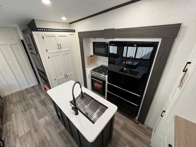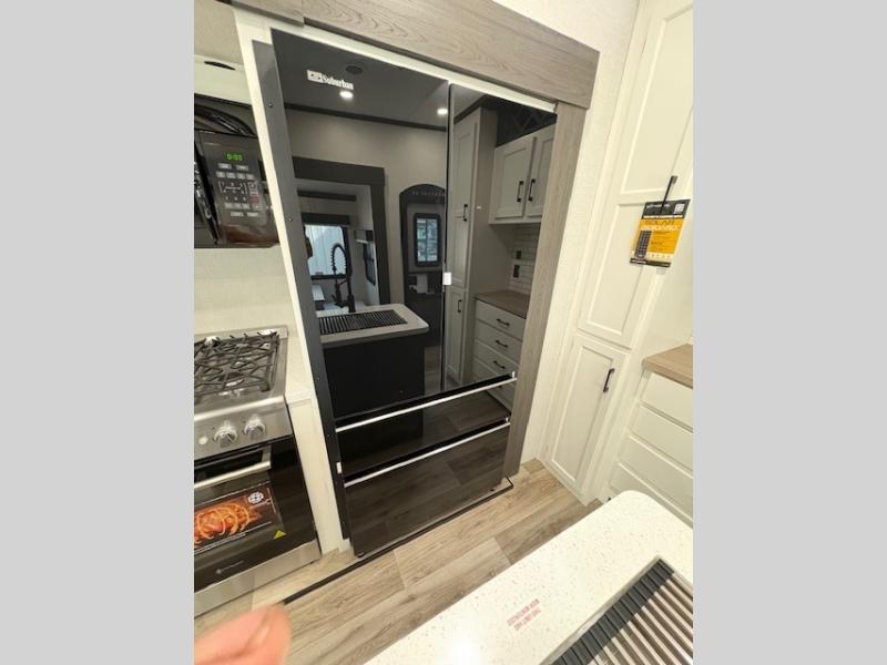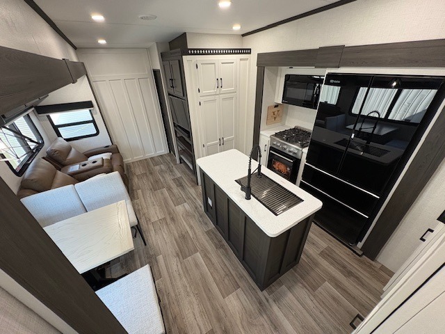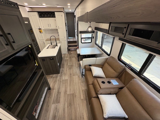 An elegant design and new features come with every one of these Venture RV SportTrek Touring Edition fifth wheels! The NXG Huck bolt frame holds these units together and Tufflex PVC roofing covers them. Heads will turn down the highway and at the campsite with the frameless tinted windows and high gloss fiberglass front cap with automotive paint. The exterior pass-through storage area has slam latch baggage doors with magnetic catches so you don't have to worry about them closing on you and LED lighting on the electric awning so you can see clearly even at night. Luxury abounds throughout these units, especially with the two fireplaces, solid surface kitchen countertops, blackout roller shades, and maximum storage designs. Come find your favorite model today!