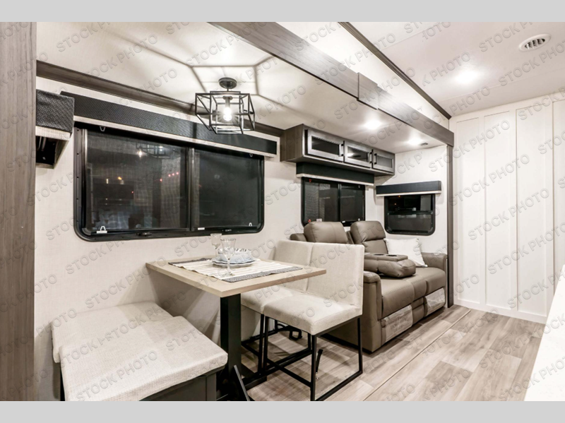 An elegant design and new features come with every one of these Venture RV SportTrek Touring Edition fifth wheels! The NXG Huck bolt frame holds these units together and Tufflex PVC roofing covers them. Heads will turn down the highway and at the campsite with the frameless tinted windows and high gloss fiberglass front cap with automotive paint. The exterior pass-through storage area has slam latch baggage doors with magnetic catches so you don't have to worry about them closing on you and LED lighting on the electric awning so you can see clearly even at night. Luxury abounds throughout these units, especially with the two fireplaces, solid surface kitchen countertops, blackout roller shades, and maximum storage designs. Come find your favorite model today!