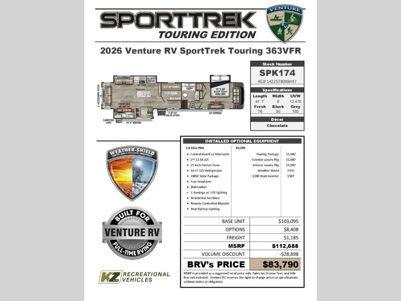 Venture RV SportTrek Touring Edition 363VFR Highlights: