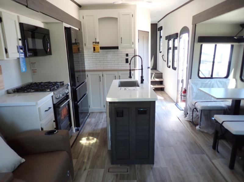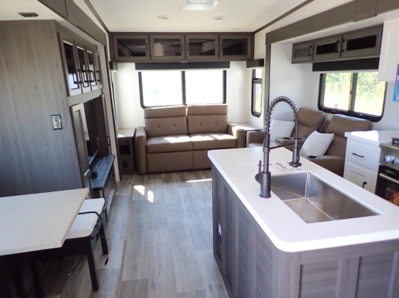 Venture RV took everything avid RV owners loved about the SportTrek Touring travel trailer and made it into a fifth wheel! Wall to wall luxury with a Modern Farmhouse décor.