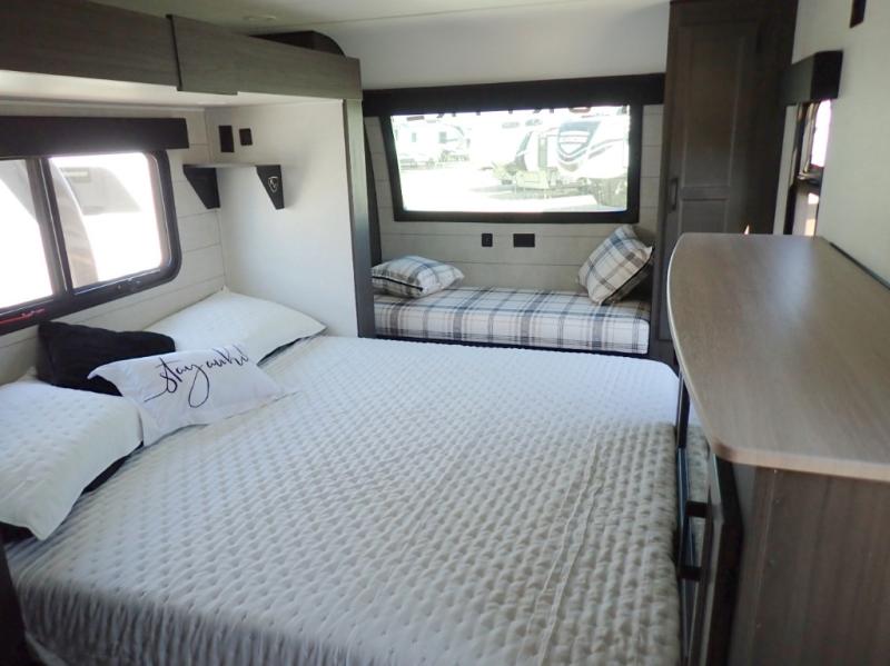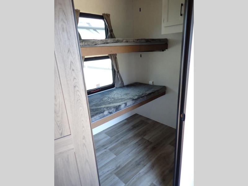 One of the standout features of the SportTrek 363VFR is the mid-bunk room. It can be viewed as a "bonus" or "flex" room. Use it as a bunk room, use it as an office, use it for storage - it's up to you!