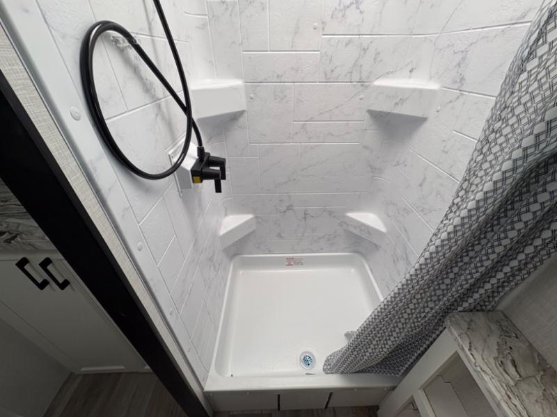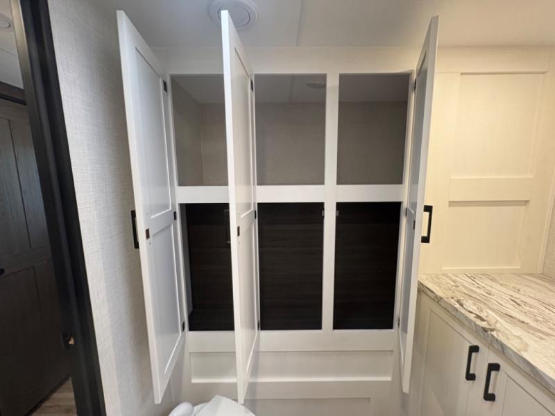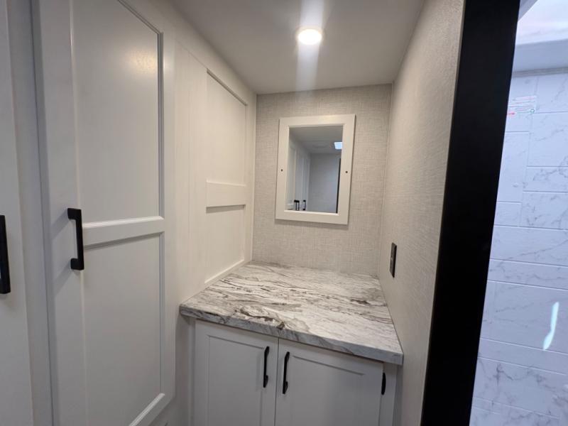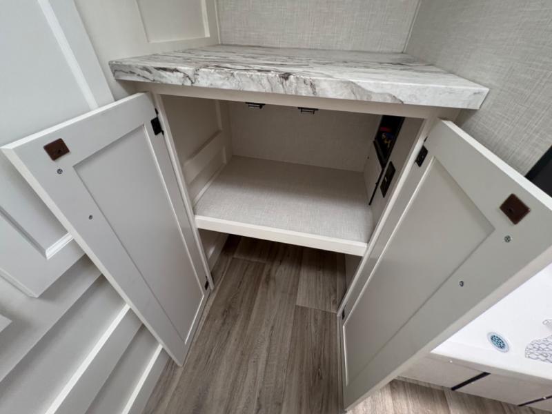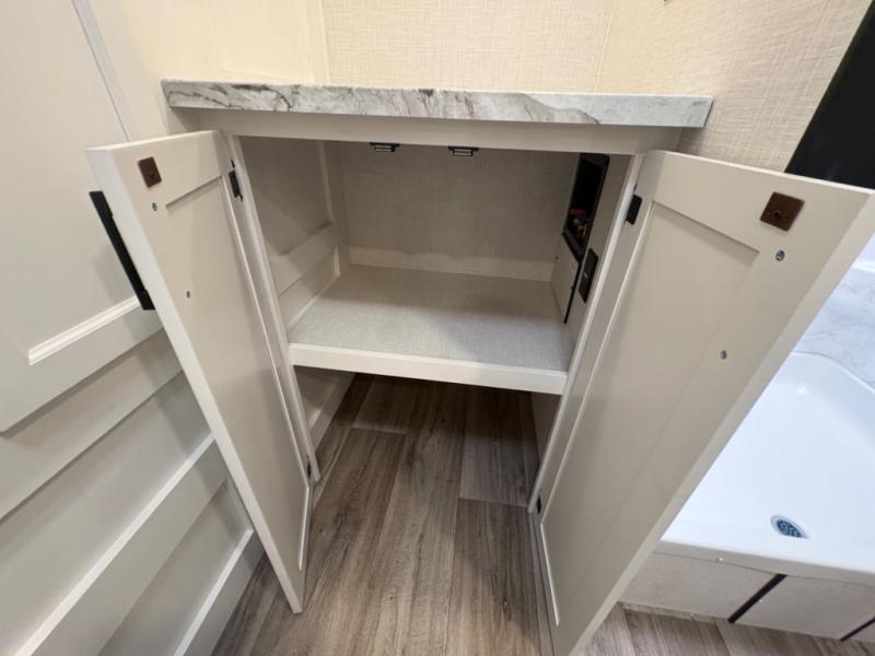 Spacious Rear Bath Layout – The 261VRB floorplan maximizes interior comfort with a large rear bathroom that provides extra storage, a roomy shower, and residential-style touches for a home-like experience on the road.