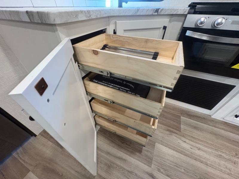 Outdoor Living Features – Enjoy a powered awning with LED lighting, an exterior kitchen option, and pass-through storage to make outdoor time just as enjoyable as your indoor comforts.