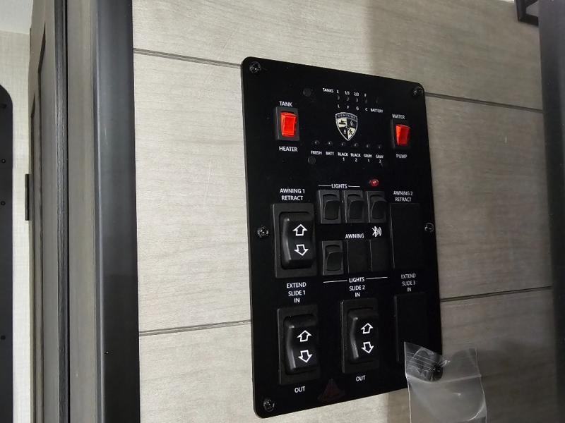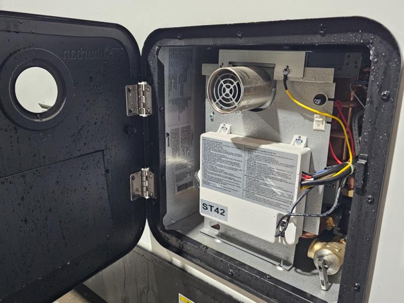 1.6 Fall Package featuring tankless water heater, blackout roller shades, and BAL 5.1 power tongue and stabilizer jacks