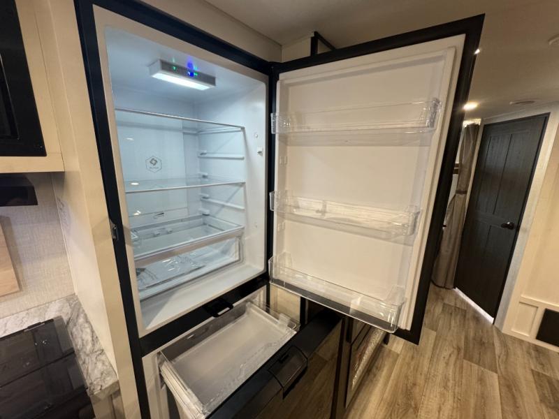 Fully Equipped Kitchen: Enjoy home-cooked meals on the road thanks to the three-burner cooktop, oven, microwave, and large 10 cu. ft. refrigerator. The oversized sink and high-rise faucet make clean-up a breeze.