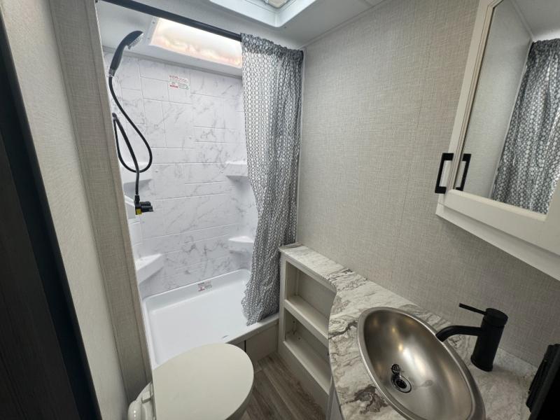Spacious Bunkhouse Layout: With double-over-double bunks in the rear, a walk-around queen bed up front, and a large U-shaped dinette that converts into additional sleeping space, the 281VBH comfortably sleeps up to eight. Perfect for families, guests, or travel buddies.