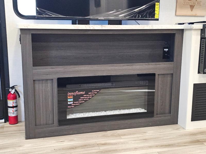 Fireplace and 50" raise-and-lower TV for entertainment