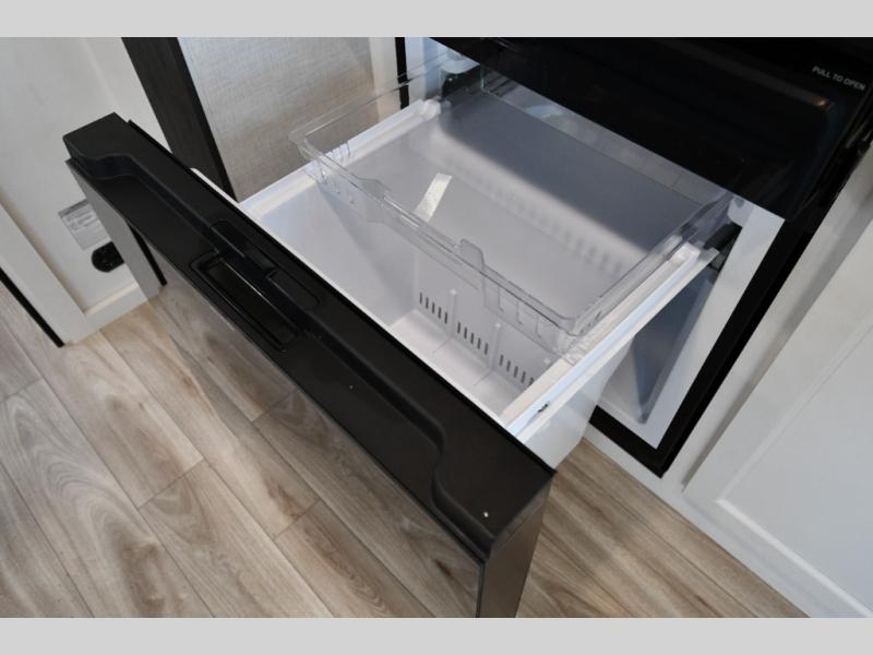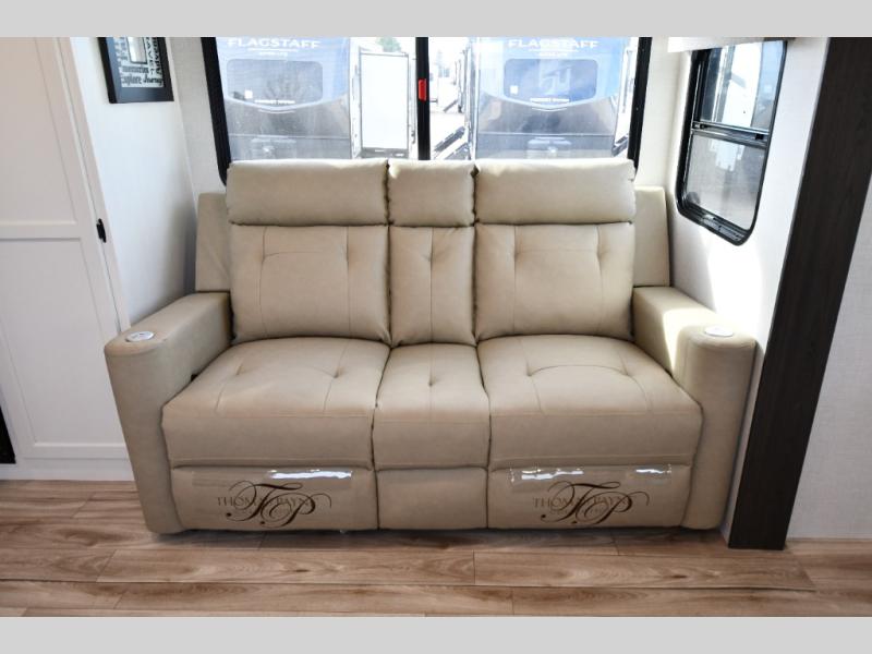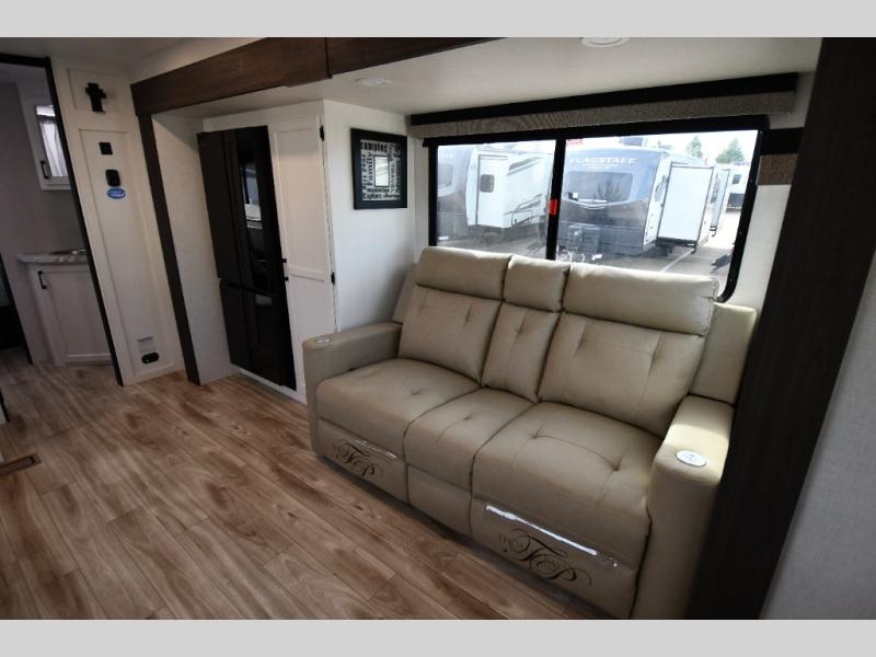 Beyond its beautiful interior, the Stratus 282VFD is designed for real-world camping. The Weather-Shield package features a heated and enclosed underbelly for extended-season travel, while the aerodynamic fiberglass front cap and durable laminated construction help improve towability and longevity. A 21-foot power awning expands your outdoor living space, making it easy to relax outside with friends and family.