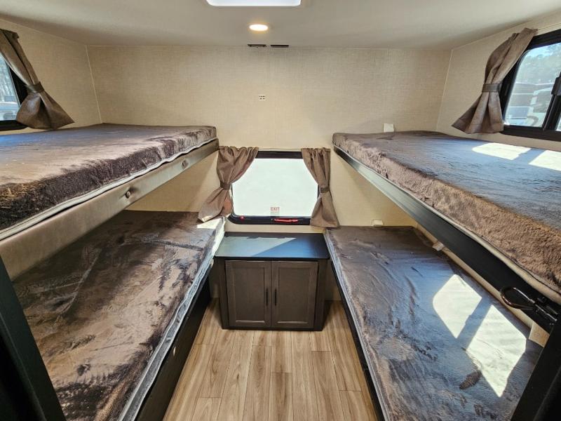 The SR291VQB offers the perfect blend of family-friendly design and outdoor convenience. With a versatile bunkhouse, comfortable living space, and a fully equipped Campfire Café, this lightweight travel trailer gives you flexibility, comfort, and adventure—without the heavy tow.