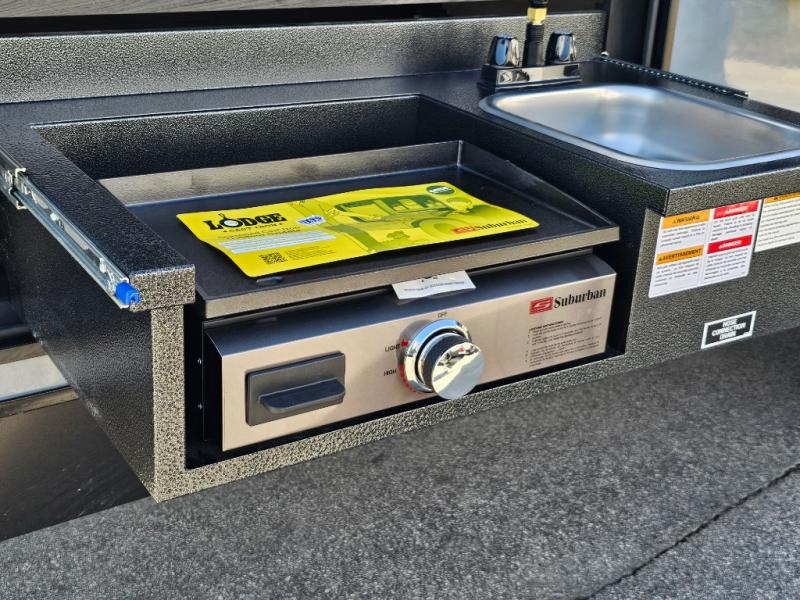 Outside Campfire Café with griddle, refrigerator, and sink for outdoor cooking