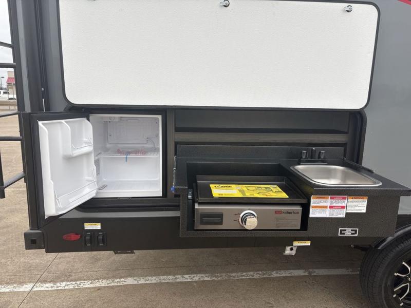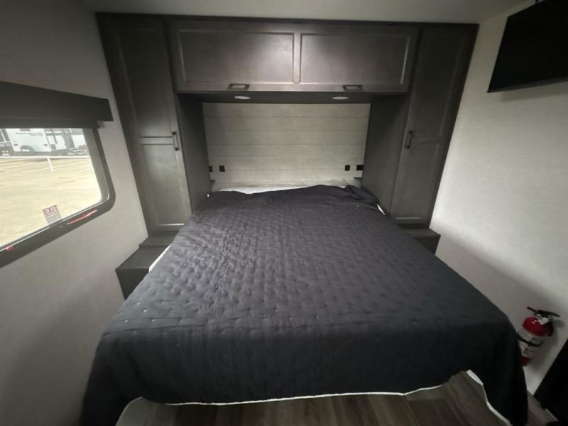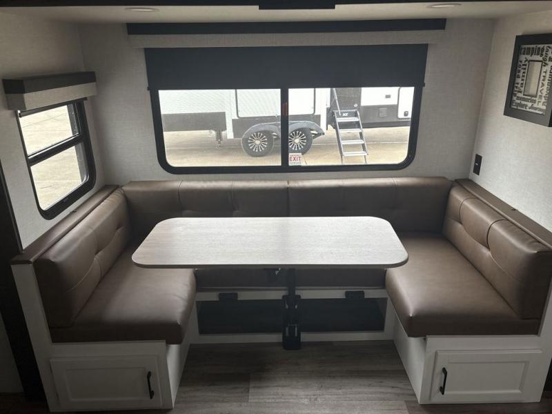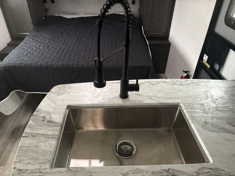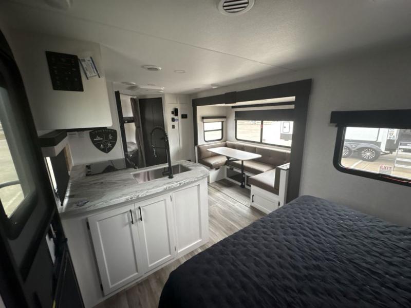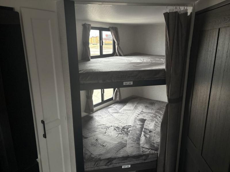 Sleep tight with your family on the road! This travel trailer is special for the whole family since it has plenty of space for sleep. First we have the 60" x 80" queen bed, the 51" x 75" double size bunk bed, and you can also sleep two people on the 88" x 42" U shaped dinette. Cook delicious dinner in the incredible kitchen. The L-shape counter includes stainless steel sink with cover and dish drying racks, three cooktop burner, refrigerator, pantry and an overhead cabinet. However, you can also have an amazing cooking time outside thanks to the outdoor kitchen, ideal to share a meal with your family while enjoying nature and its surroundings. Store your belongings in the dual wardrobes beside the bed and also in the pass thru storage. Finally, take a relaxing bath in the full bathroom furnished with a 30" x 36" shower.