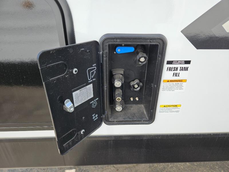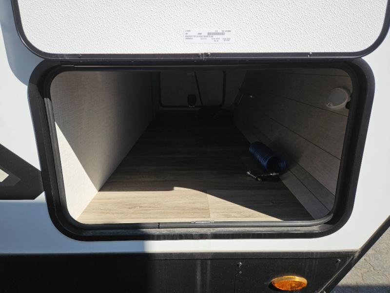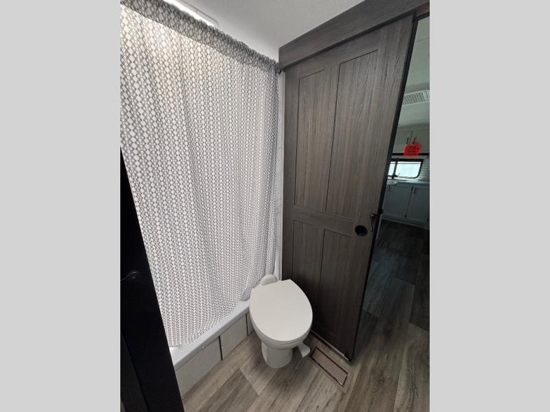 Sleep tight on the road! This travel trailer is special for four. First we have the 60" x 80" queen bed, and two people can easily fit on the sit n' slide dinette. Cook delicious dinner in the incredible kitchen. The counter includes a stainless steel sink with cover and dish drying racks, three cooktop burner, and an overhead cabinet. There is also a 10 cu. fridge and pantry for food storage. You can also have a relaxing time on the theater seating with USB port on each side. Store your belongings in the dual wardrobe beside the bed and also on the pass thru storage. Finally, take a relaxing bath in the walk thru bathroom furnished with a 30" x 36" shower.