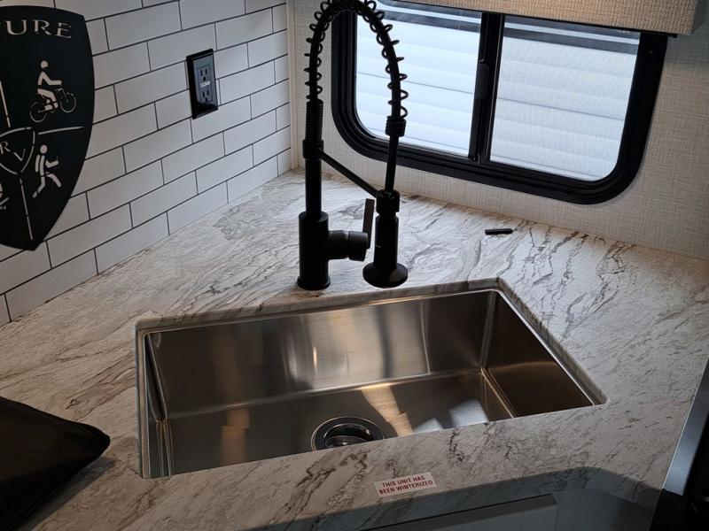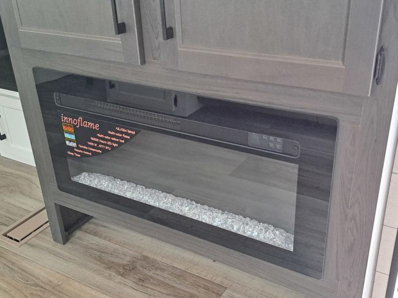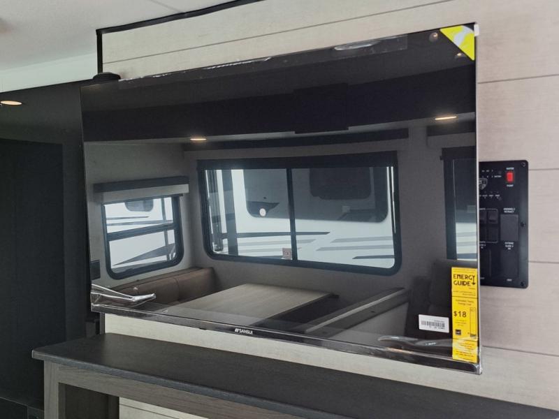 You're going to feel right at home in this Stratus single slide unit! There is not only a fully equipped kitchen with a three burner cooktop, but also an outside campfire café with a griddle, refrigerator, sink, and even an exterior 40" TV for your entertainment. As you enter the unit, you will notice to the right a walk-in pantry with coat hooks, and to the left is the full rear bathroom with a 30" x 36" shower, a three door linen closet, and a cabinet prepped to add an optional washer and dryer. If mother nature rains on your parade then relax inside on either the 70" sofa or the sit n' slide table dinette across from the entertainment center.